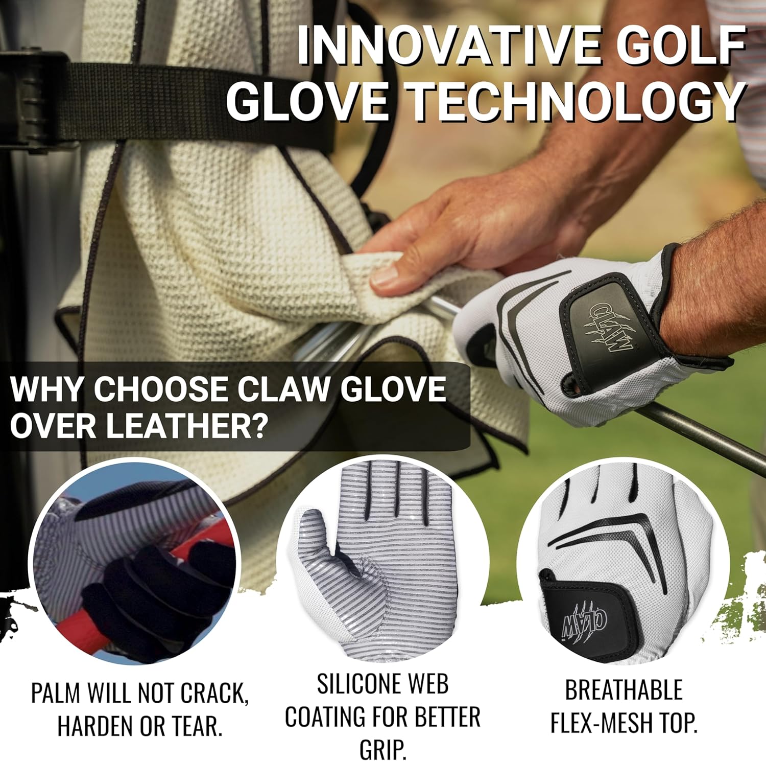 - BEST OF COMFORT AND PERFORMANCE: Step up your golf game with this Claw menβs golf glove and experience remarkable comfort without sacrificing performance.