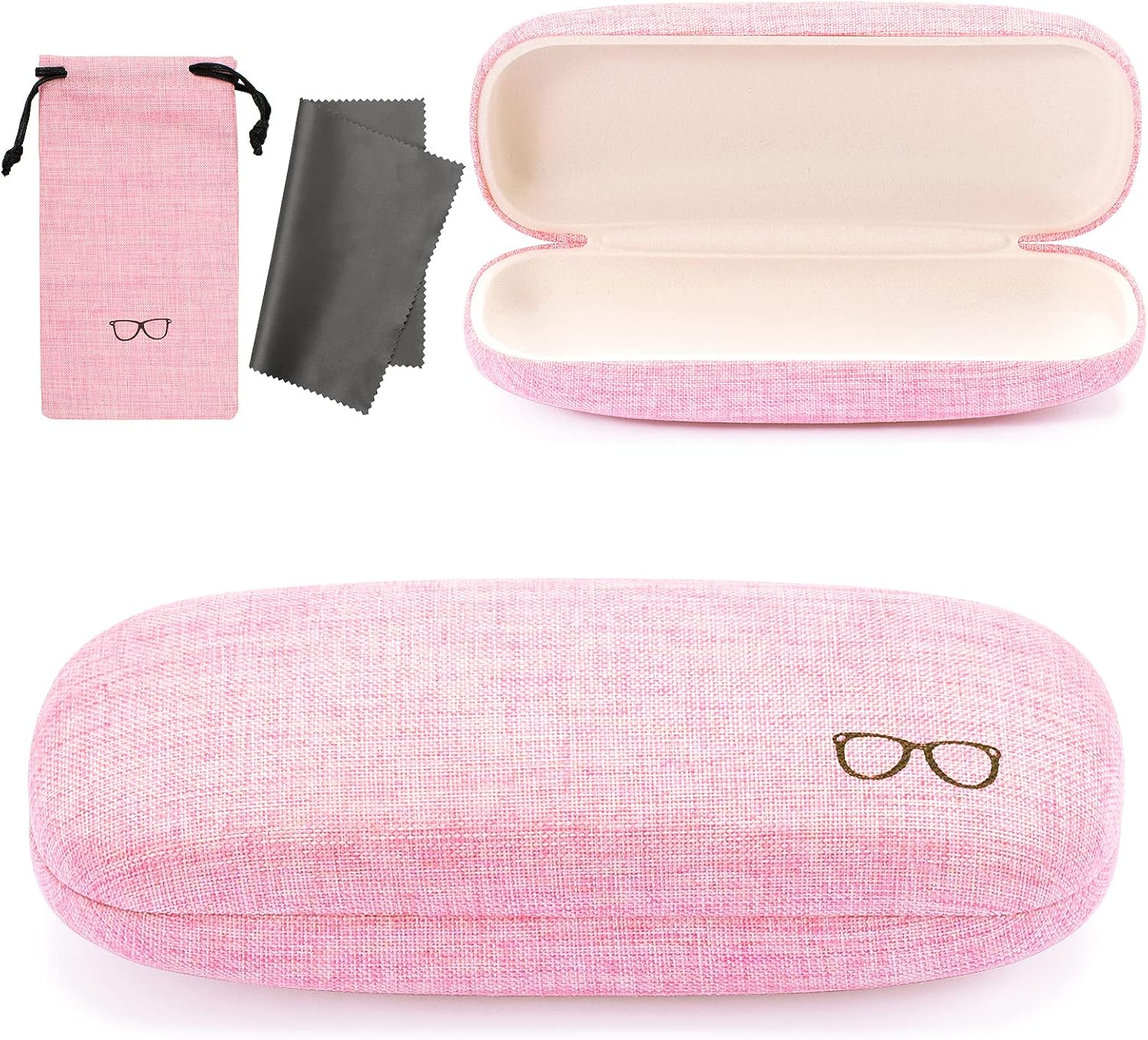 - Package includes : 1Pcs Glasses Case. 1Pcs Cleaning Cloth. 1Pcs Eyeglass Drawstring Pouch