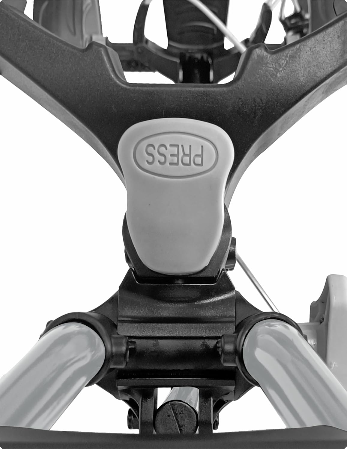 - One-Second Fold/Unfold: Open or collapse your golf push cart in a single step with patented bullet-system technology. Lift the handle to unfold or press the colored button to fold, making setup and storage effortless