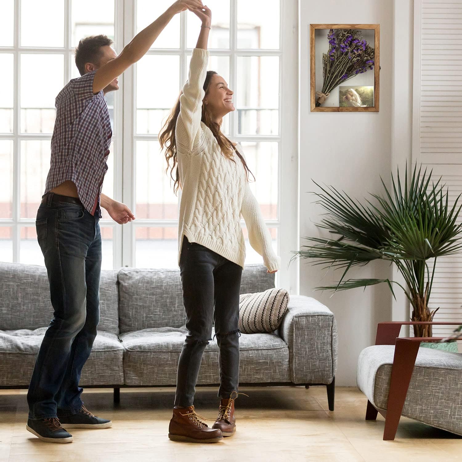 - Hinged Door - The front display door makes it easy to place or exchange items inside. The retro horn lock makes the shadow box lockable and more secure, and prevents the items inside from falling out.