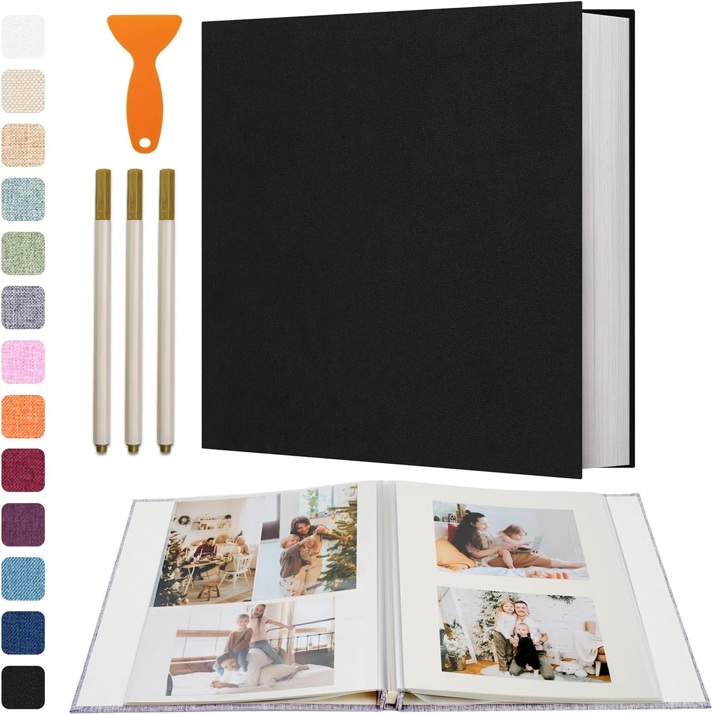 Vienrose Photo Album Self Adhesive 4x6 5x7 3x5 8x10 Scrapbook Album DIY Scrap Book with Metallic Pen 120 Pages Black