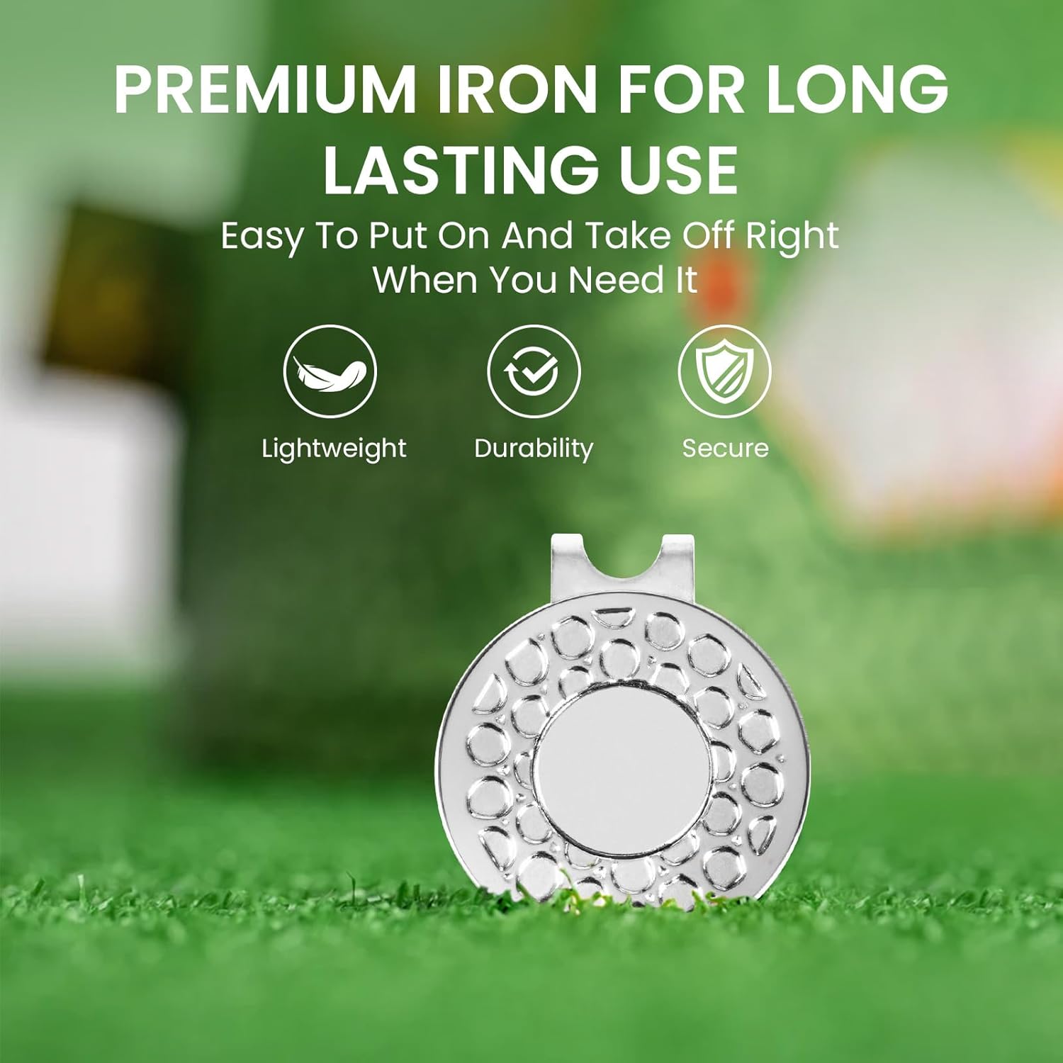 - Magnetic Performance: Engineered with a strong magnetic design, this golf ball marker hat clip securely grips metal markers even during violent swings or bumpy cart rides. Its removable design allows quick marker swaps without disrupting play.