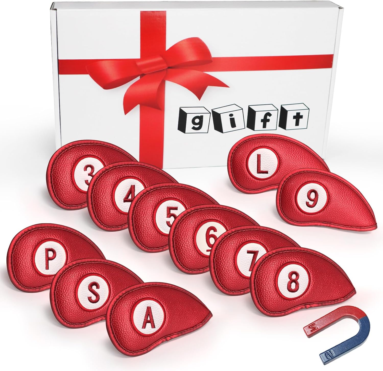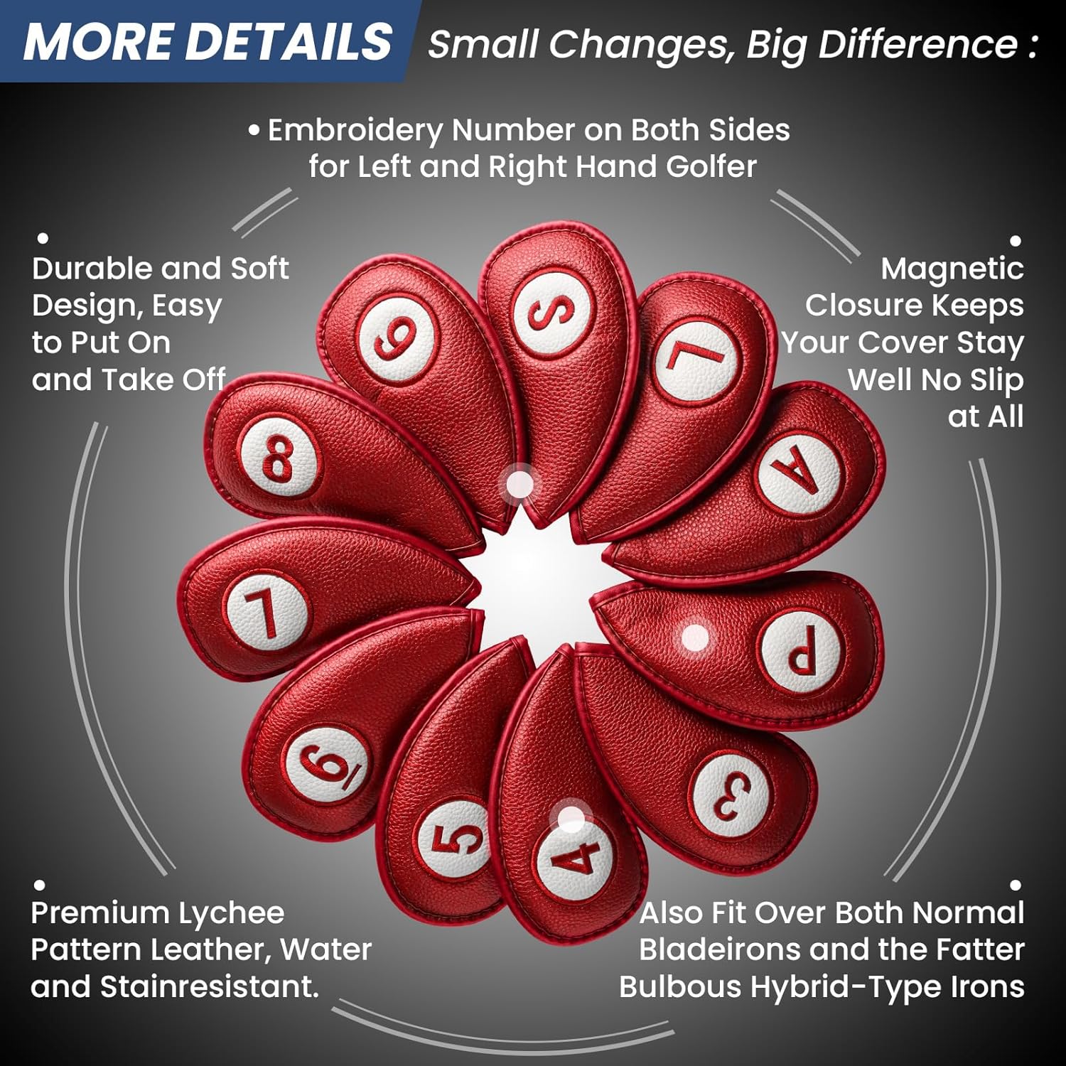 FINGER TEN Golf Club Covers for Irons Magnetic Value 11 Pack, Synthetic Leather Deluxe Head Cover Set Headcovers for Irons Fit Main Iron Clubs