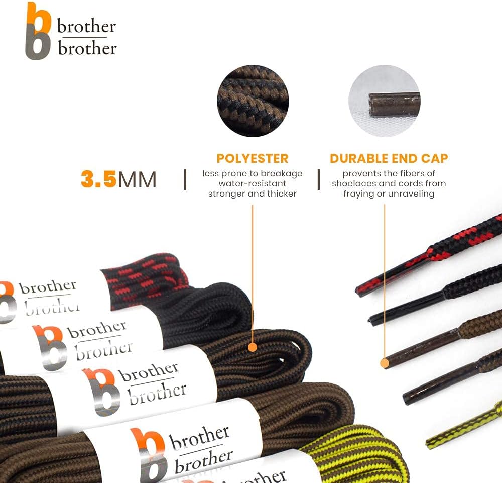 BB BROTHER BROTHER Boot Laces (5 Pairs) of Heavy Duty and Durable Round Shoelaces for Work, Hiking and Walking Boots