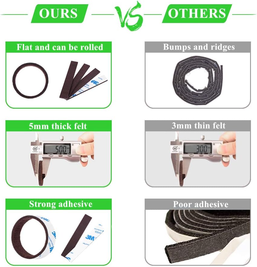 - ✅ 【EXTREMELY ADHESIVE】 Heavy duty 5mm thick and soft felt strips with an extremely sticky backing. We use only the best materials for our felt strips so rest assured that our felt strips will serve you in the long run. They are made of sturdy felt and strong adhesive that will stick and make sure it stays on the legs after moving the furniture.