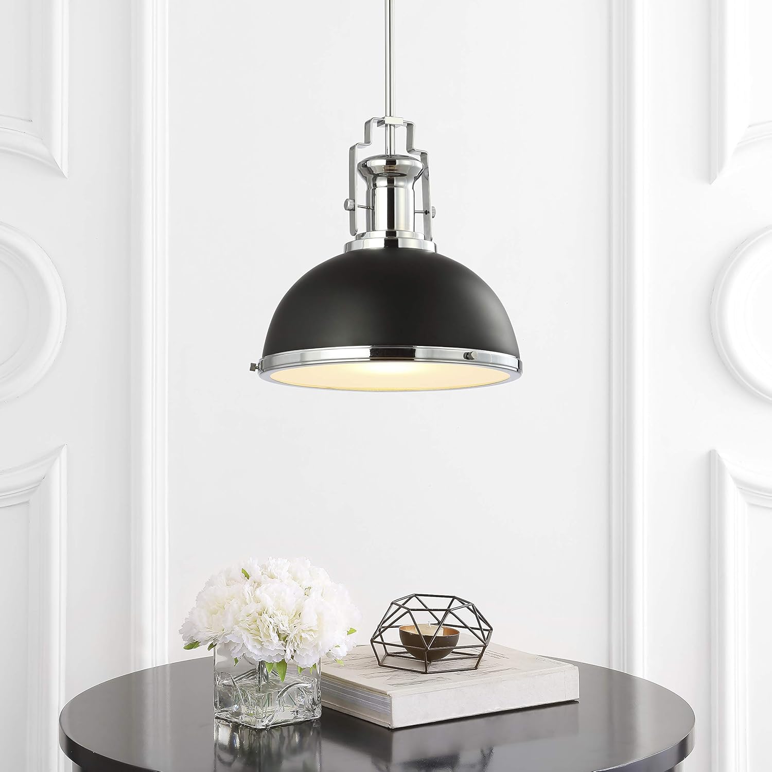 JONATHAN Y JYL9536B Homer 13" Adjustable Iron/Glass Vintage LED Kitchen Pendant for Living Room Bedroom, Classic Cottage, Black/Chrome