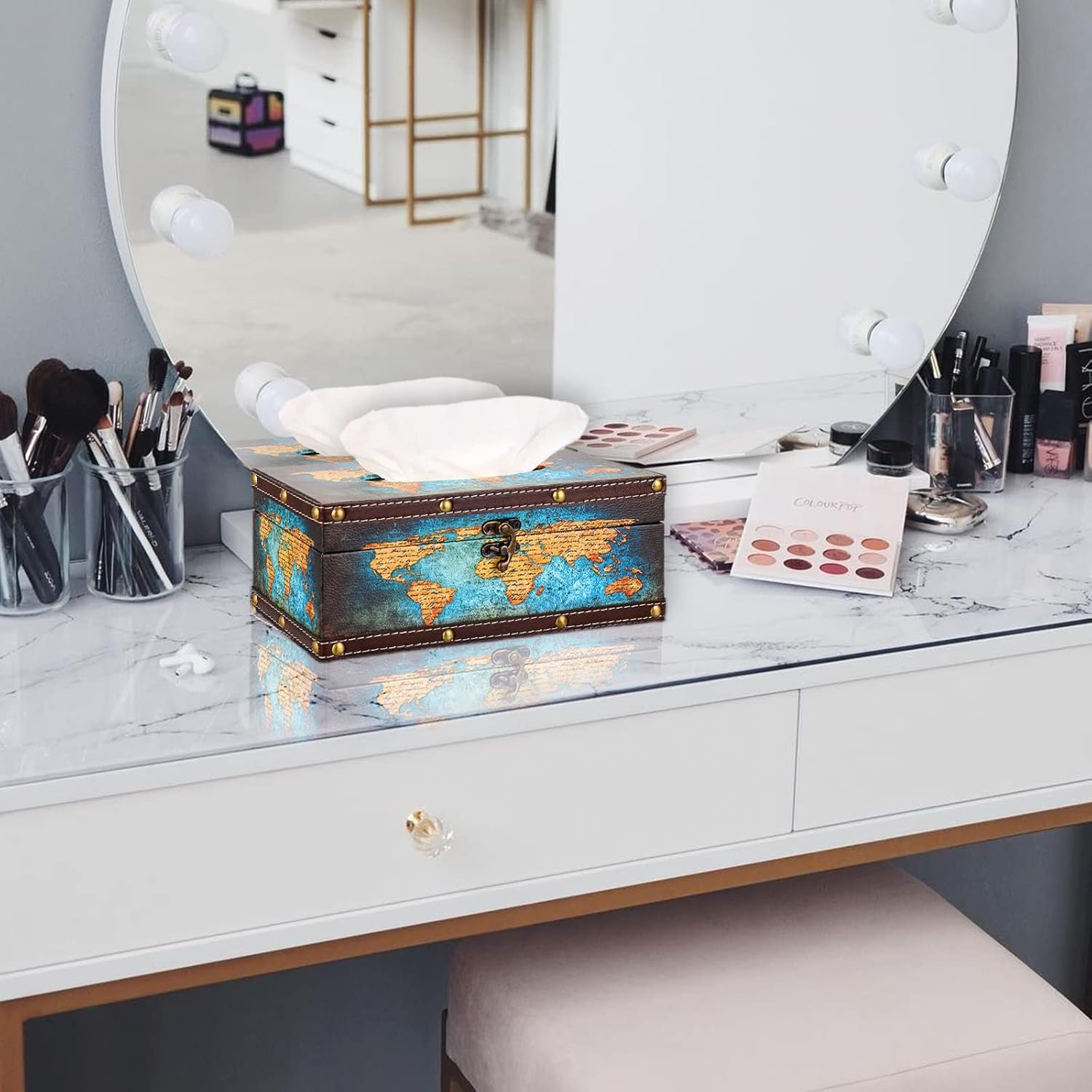 - 💗Retro Style Decoration - The retro and vintage style tissue box can blend in perfectly with most home and counter décor, such as: Tropical, coastal, boho, beach, nautical theme; It can not only match well with your various furniture and home décor, but also add nice looking and aesthetic touch to your home.