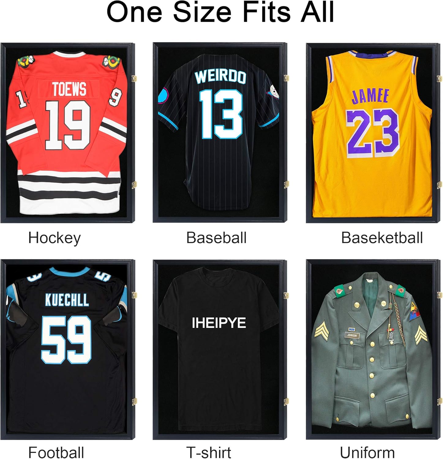 - HIGH QUALITY WITH RELIABLE FEATURES - Made out of wood with Anti-fade Matt Black finish, IHEIPYE Jersey Frame is durable enough for a long-lasting working life. Shatter Proof high transparency and UV protection acrylic glass panel, velvet like felt lining along with two gold plated anti-theft locks can well protect your cherished sports memorabilia or collectibles. Customer-friendly accessories and visual user manual are packed all together with our sincere service!