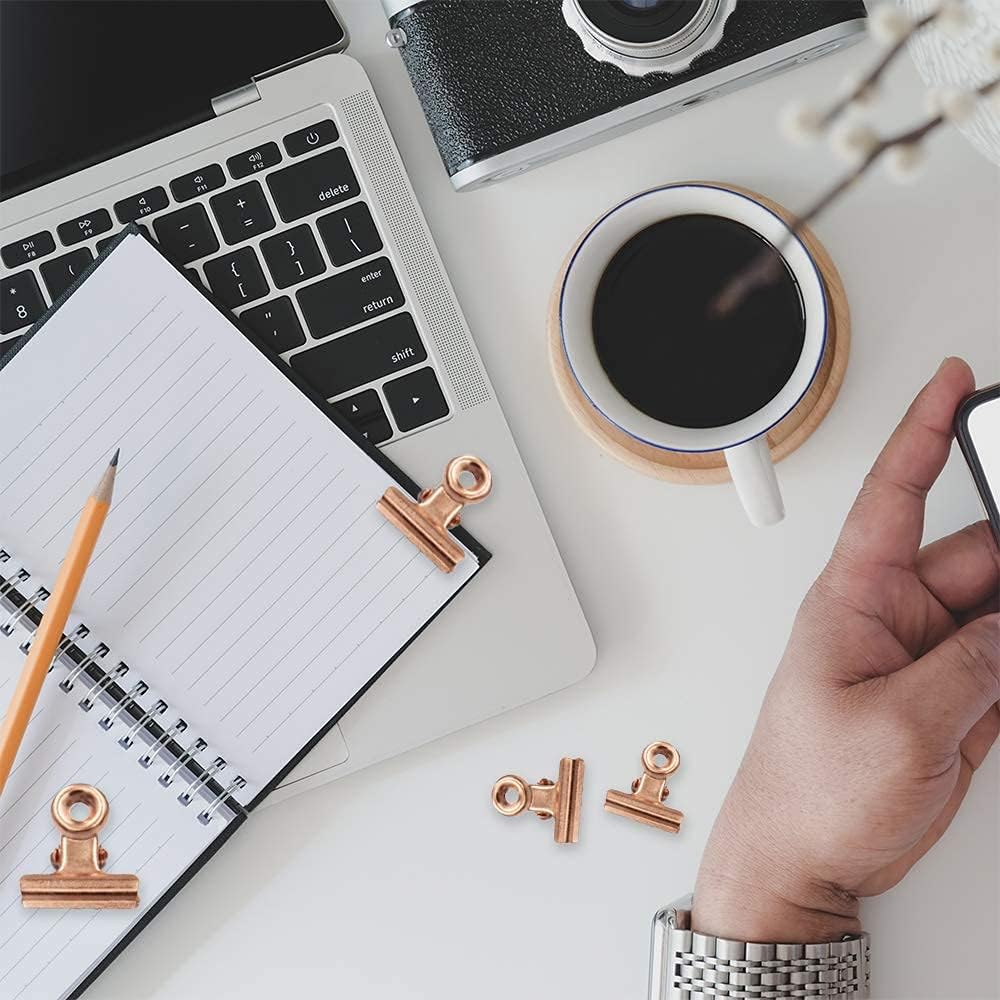 12 Pack Bulldog Clips with Push-pins for Corkboard,Metal Clips for Crafts, Metal Binder Clips for Pictures, Spring Paper Clamps for Office Documents (Rose Gold,1.5inch)