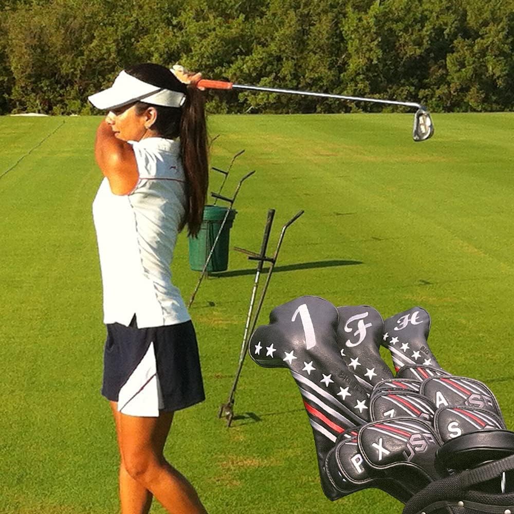 Big Teeth Golf Cover USA Stripe and Star Headcover Covers, Driver Fairway Wood Hybrid Headcovers Fits Blade Mallet Putter Iron and Woods with Magnetic Club Protector Pu Leather Golf Accessories