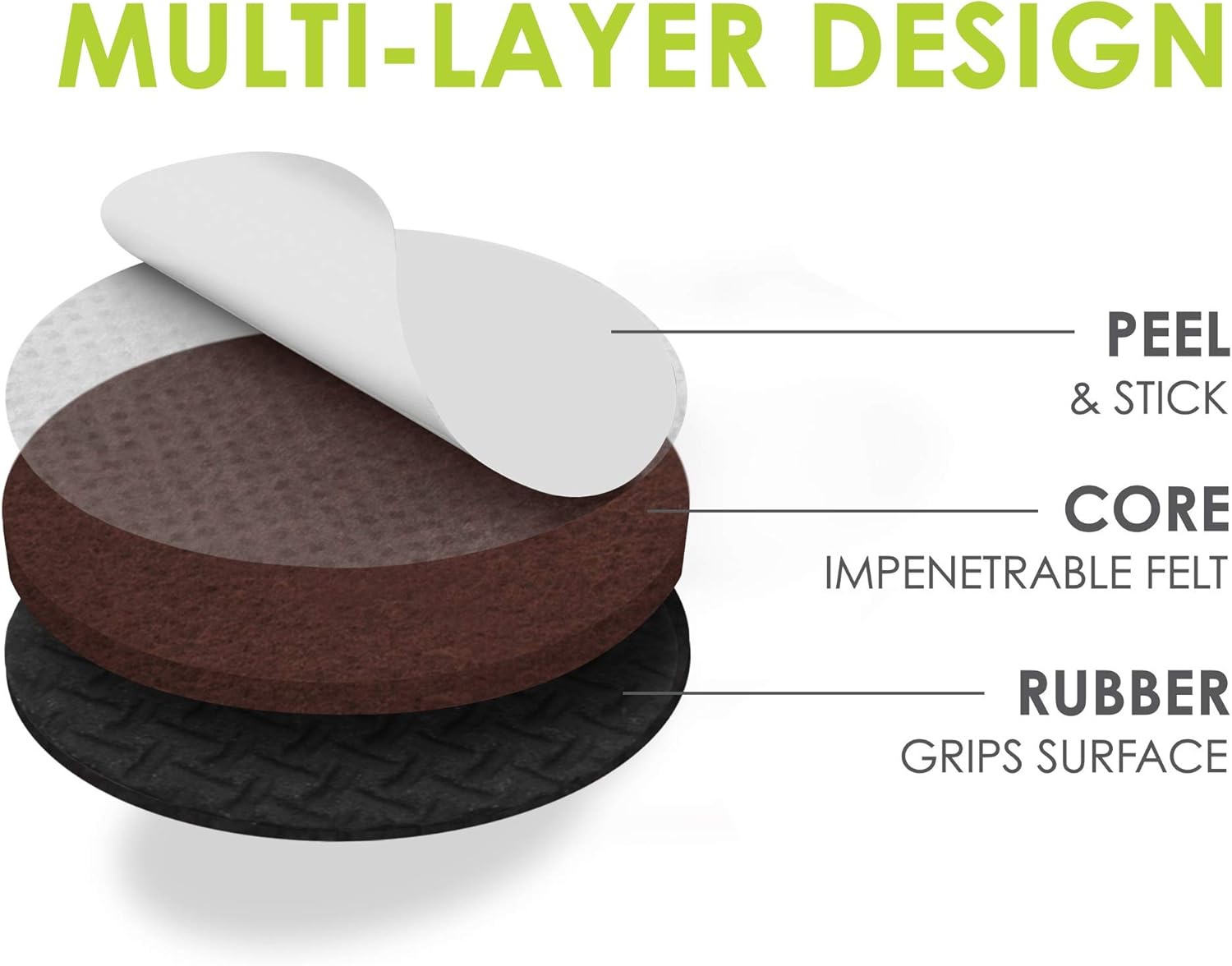 - Heavy duty self adhesive to stay on furniture β Each round furniture grip pad features a strong adhesive backing for quick and easy attachment under furniture and objects. Simply clean off the furniture feet, peel off the adhesive backing and stick on premium furniture pads. Note: furniture feet must be clean to ensure optimal adhesion and non skid performance.