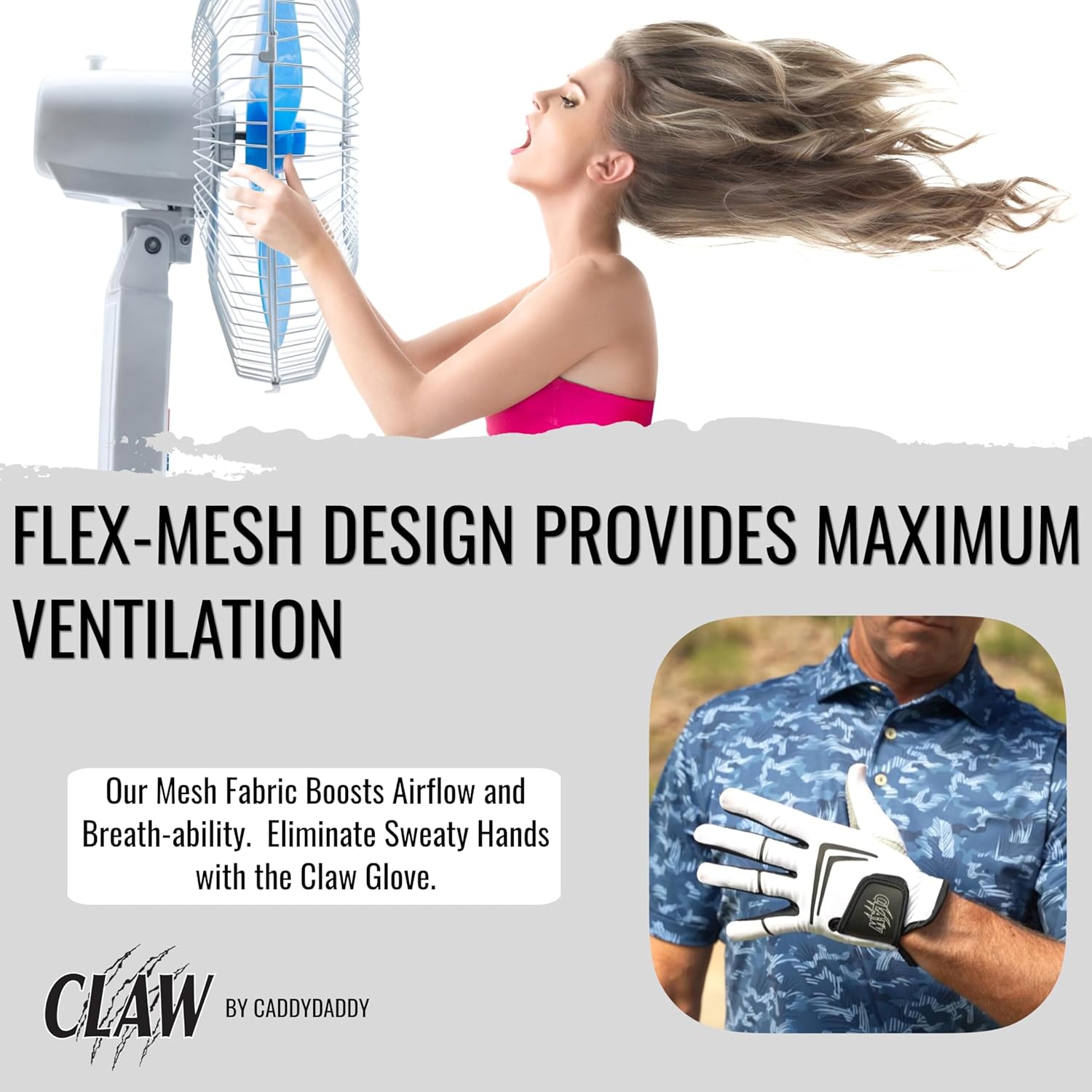 CaddyDaddy Claw Golf Gloves for Men | Flex-Mesh Design for Cool Ventilation | Lasts 3-5 Times Longer Than Leather | Silicone-Web Coating for Maximum Grip | Machine-Washable