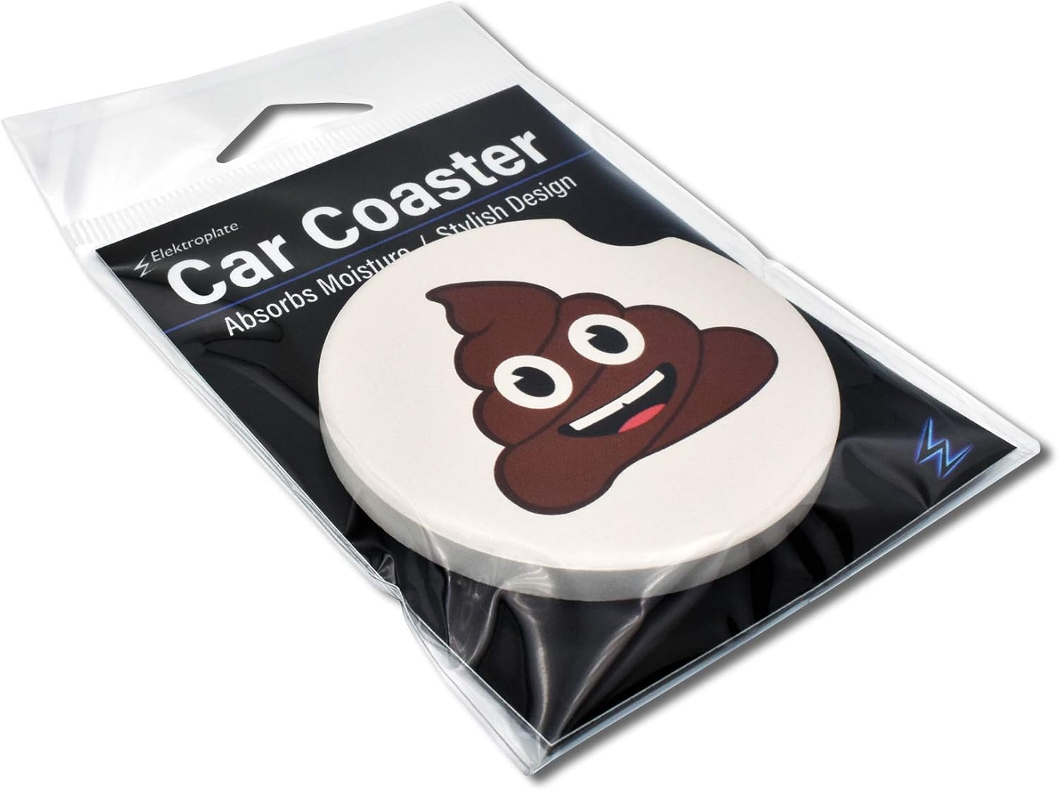- Stylish Car Coasters: Elektroplate Funny Poop Smiley Face Absorbent Ceramic Car Coasters in vibrant colors and classic design. (Set of 2)