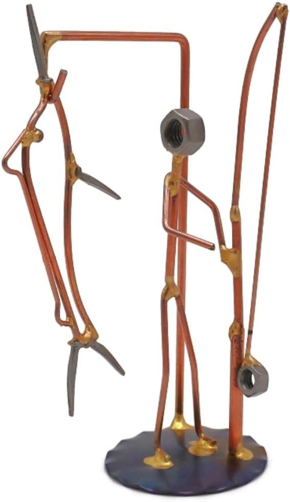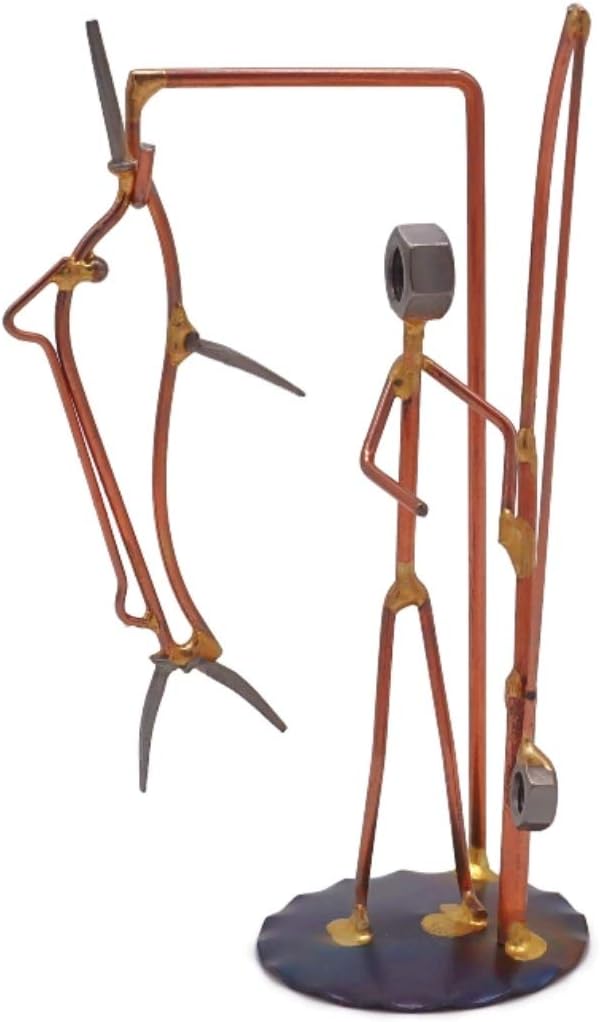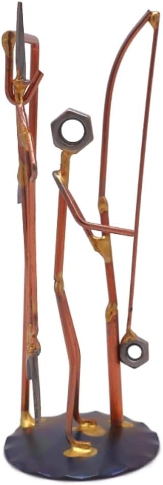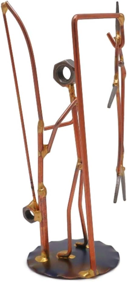 - SPORT FISHERMAN WITH MARLIN figure is crafted from nuts, brazing rods, washers, steel, and is great to use as a trophy or to accompany your business cards for a fun, eye-catching desk accessory. (The business cardholder may be purchased separately.) Approximately 3.5" wide by 6" tall.