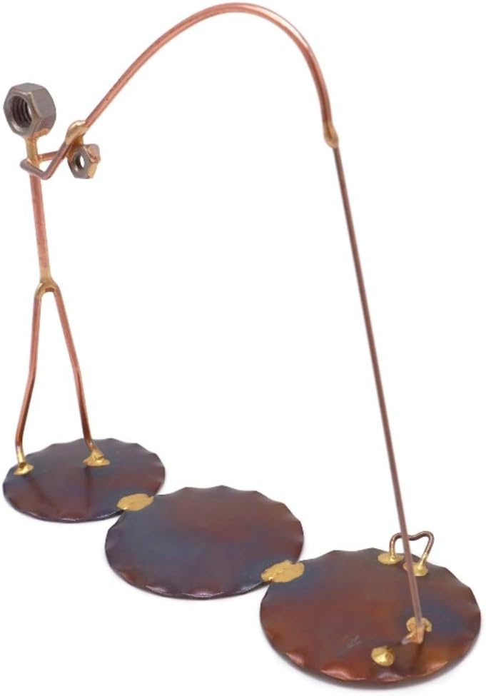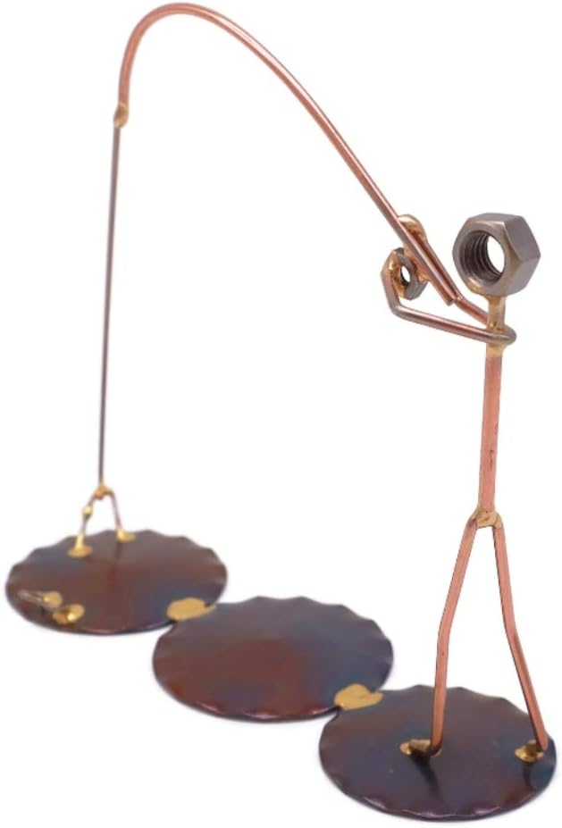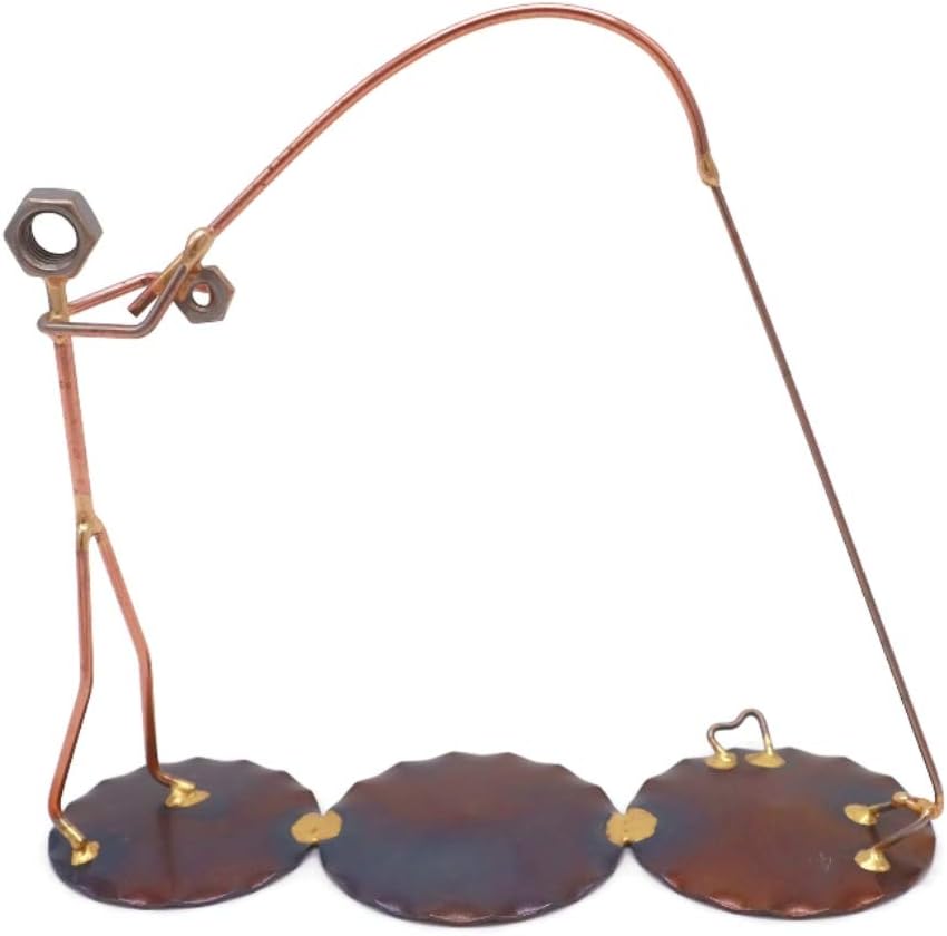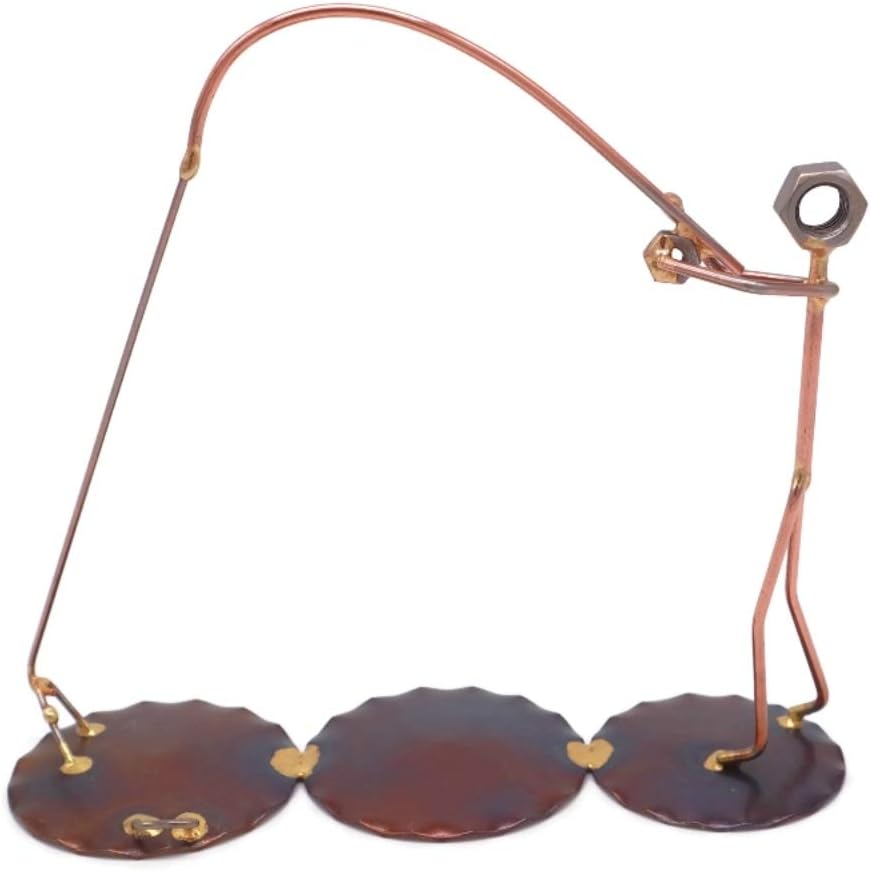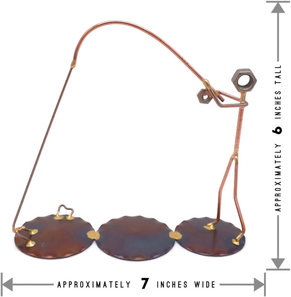 - FISHERMAN WITH FISH ON figure is crafted from nuts, brazing rods, washers, steel, and is great to use as a trophy or to accompany your business cards for a fun, eye-catching desk accessory. (The business cardholder may be purchased separately.) Approximately 7" wide by 6" tall.