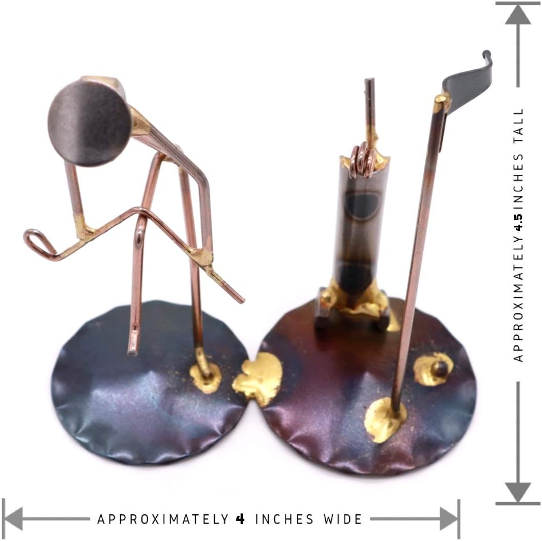 - Golfer Breaking Clubs - with Golf Bag/Flag figure is crafted from nuts, brazing rods, steel, and is great to use as a trophy or to accompany your business cards for a fun, eye-catching desk accessory. (The business cardholder may be purchased separately.) Approximately 4.5″ tall by 4″ wide.