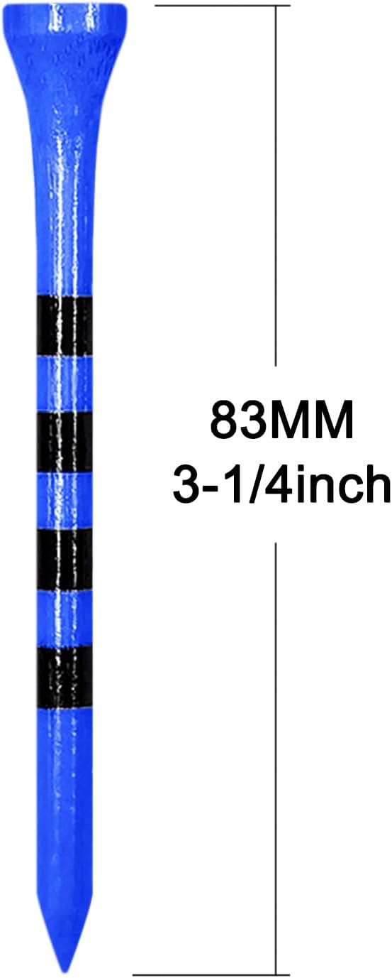 Wooden Golf Tees 3-1/4", 2-3/4", 2-1/8", 1-1/2" Available, 100 Count (Natural Color, White, Black, Blue, Red, Green, Yellow, Pink, Orange)