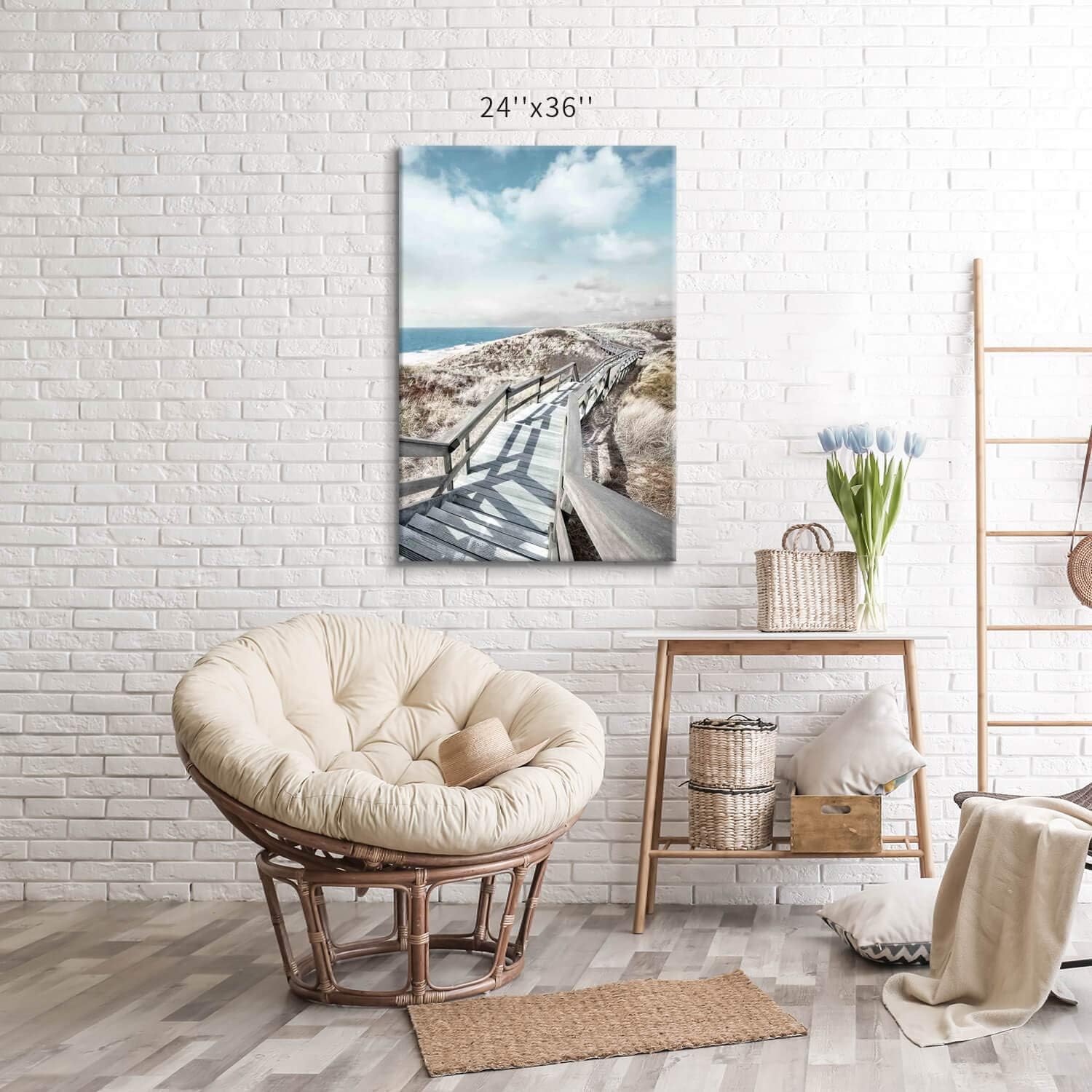 - Beach Boardwalk Wall Art: Printed on premium quality canvas in high quality fade resistant ink, gallery wrapped over wooden bars