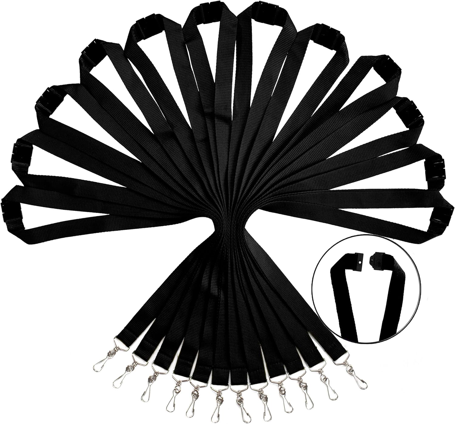 12 Pack Breakaway Lanyards for ID Badge Holder, Durable Neck Straps for Schools, Office, Cruise, Black