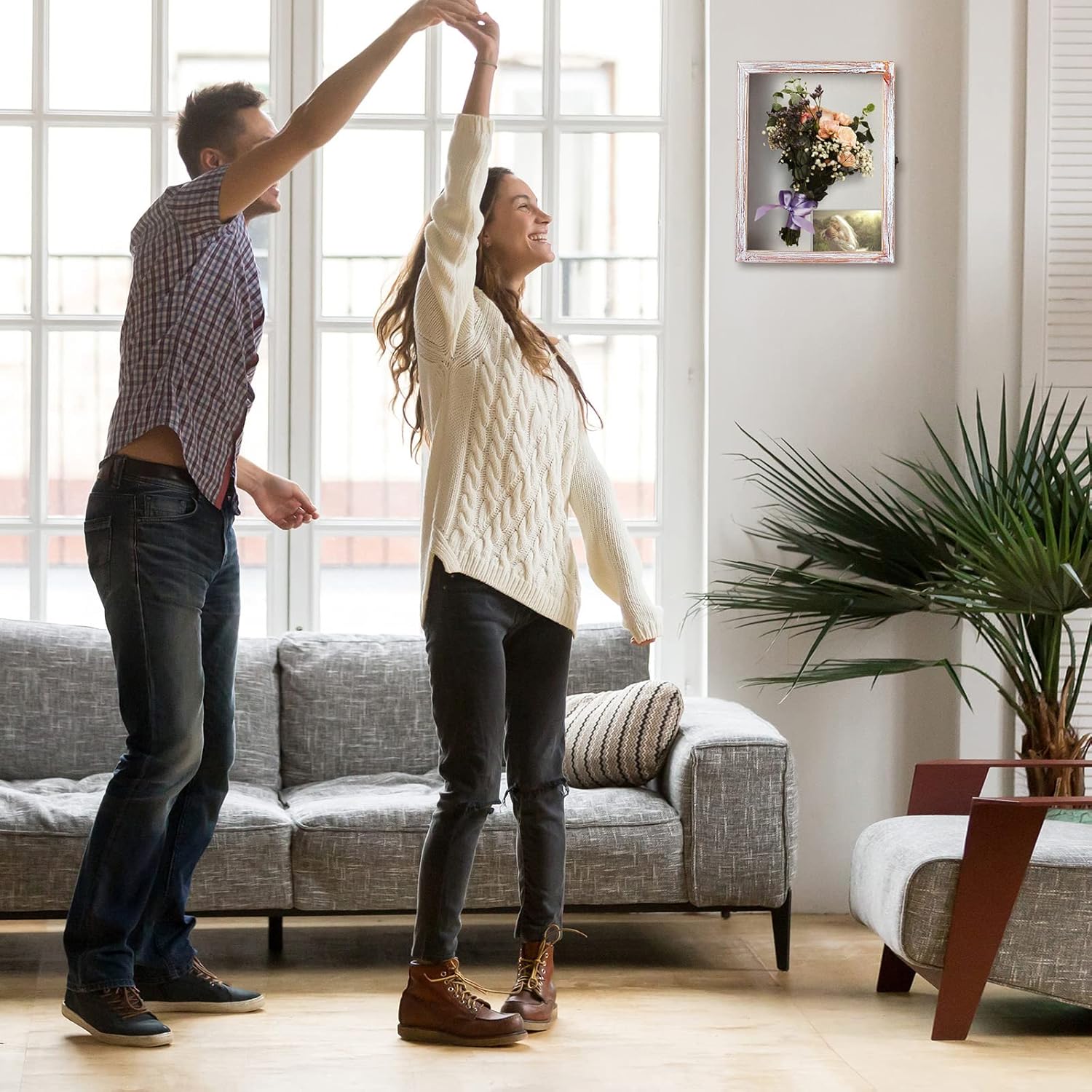 TJ.MOREE Flowers Shadow Box Display Case 11 x 14 Large Shadow Box Frame with Glass Window Door Deep Depth Picture Frame Wedding Bouquet Memorabilia Medals Photos Memory Box for Keepsakes - White Pink