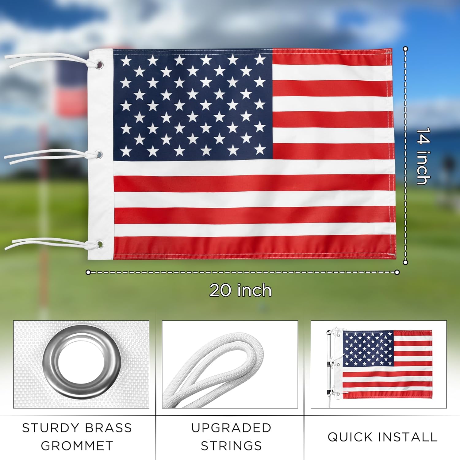 KINGTOP USA Golf Flag 20x14 Inch - Brass Grommets, Dual-layer 420D Nylon, Double Sided Printing - Standard Putting Green Flags for Backyard Practice, Golf Courses, Country Club, 1-Pack