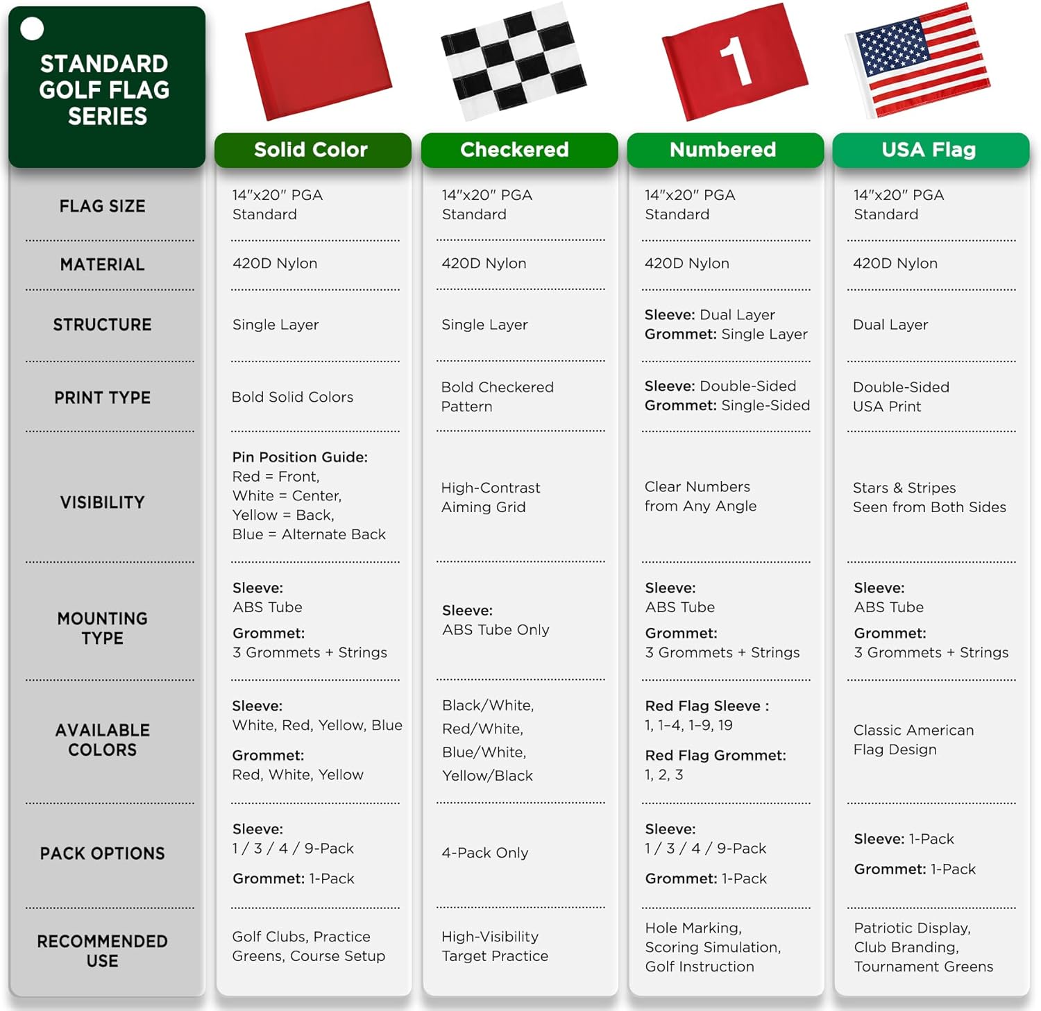 - PGA Standard Size: Tailored perfectly at 14" H x 20" L, designed for flagpoles between 6 to 8 feet, meeting the official PGA standard.