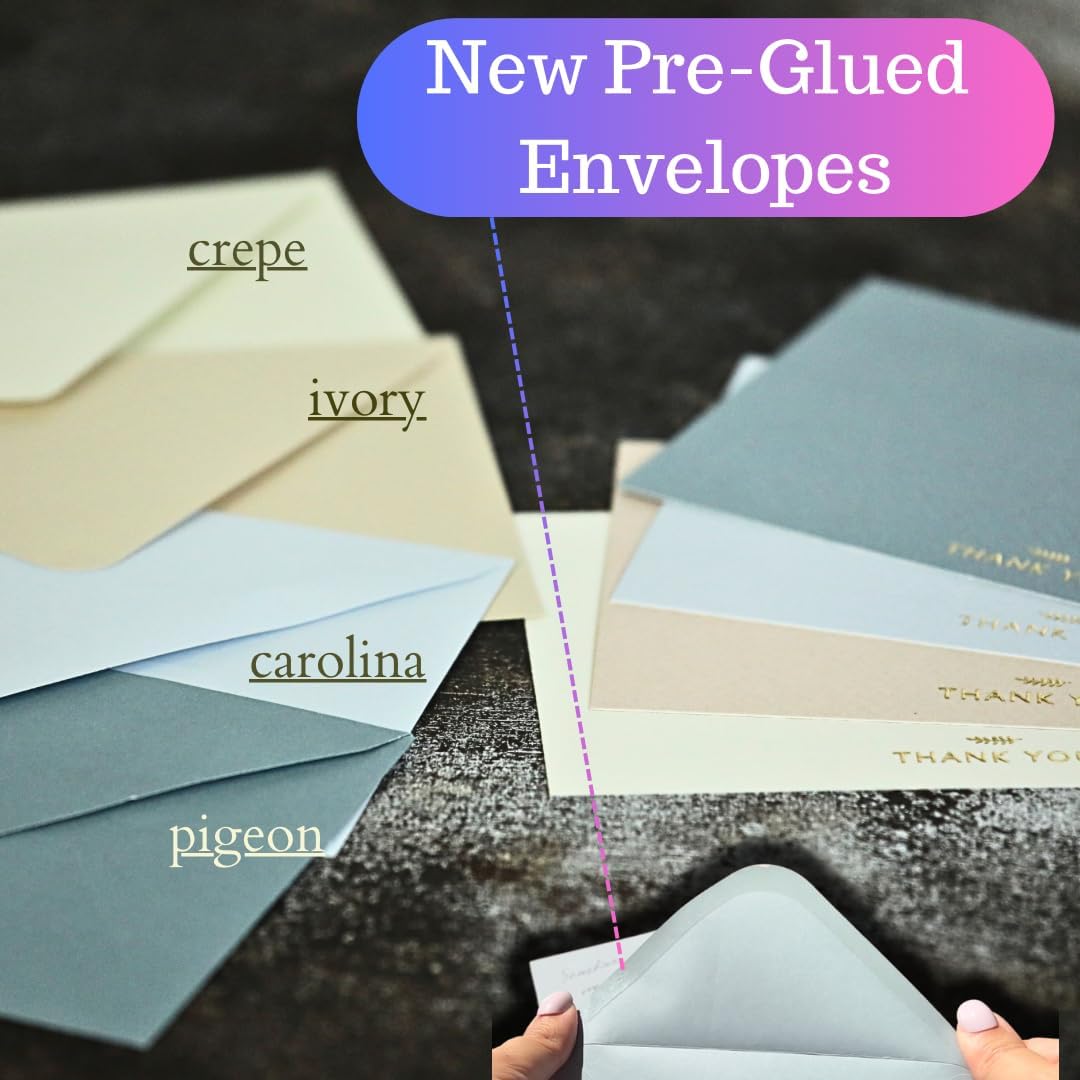 - EMBOSSED LEAF ENVELOPES: Each pre-glued envelope showcases a delicate embossed leaf symbol at front for a timeless and classy touch. This set includes 36 cards, 36 matching pre-glued envelopes, and 36 gold foil stickers—everything you need for a complete, elegant presentation.
