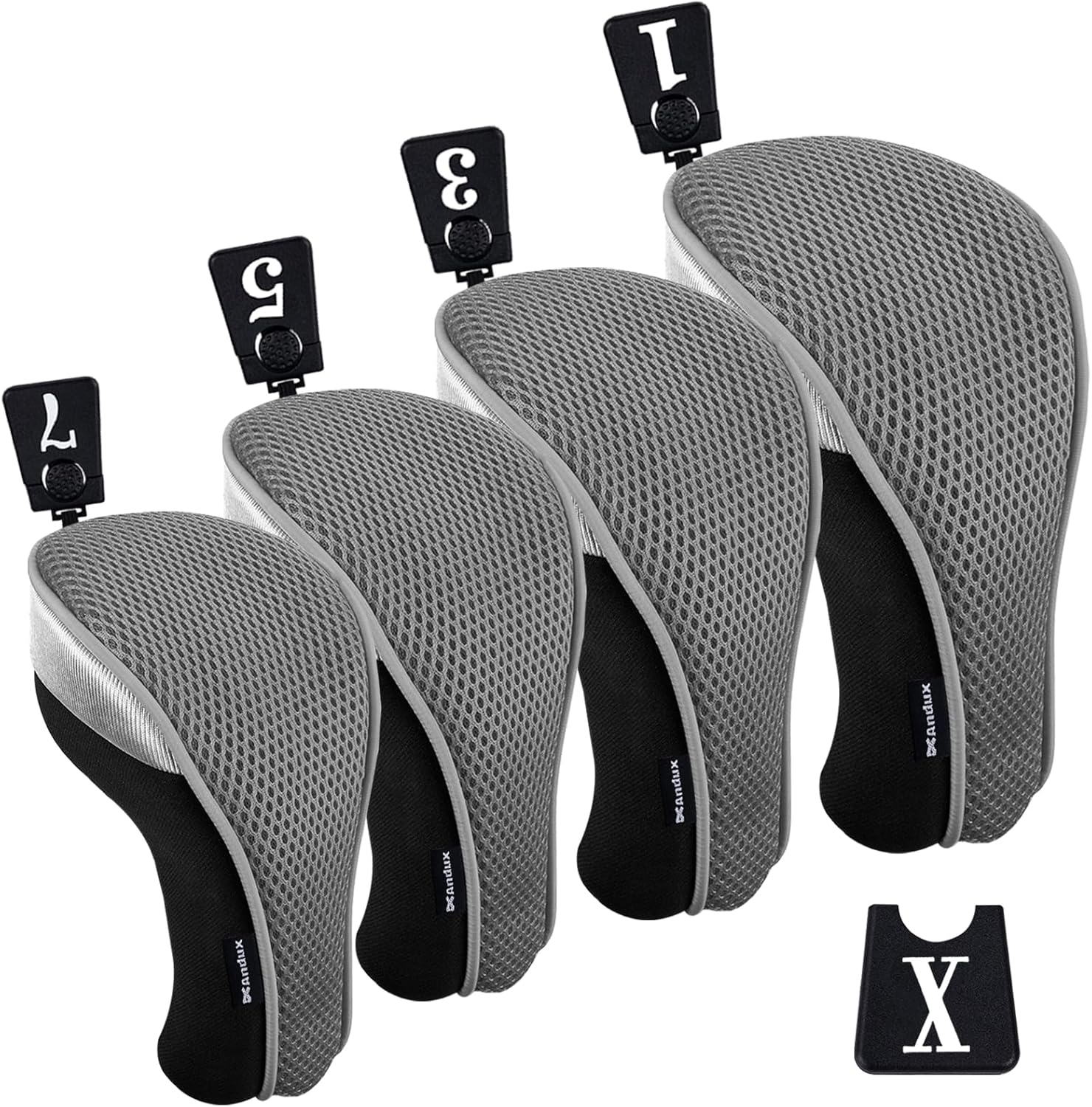 Andux 4pcs/Pack Mesh Golf 460cc Driver Fairway Wood Club Head Covers with Interchangeable No. Tags