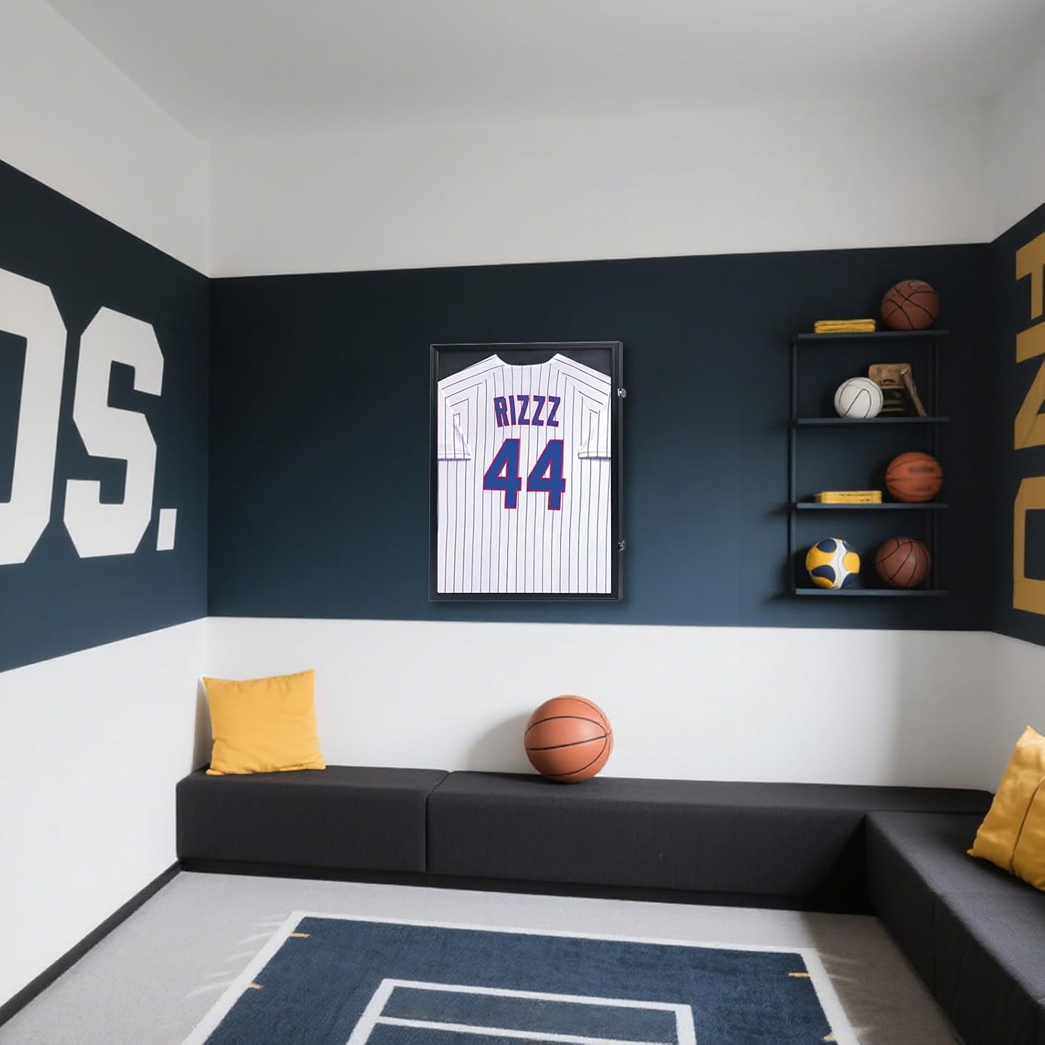 - ONE SIZE FITS ALL SPORTS JERSEY - Large size display frame 31.25" x 23.25" x 1.5" fits most sports jerseys such as Baseball, Basketball, Football, Soccer, Hockey etc. Make it a great gift for sports fans! It can also be used as a shadow box to display military uniform, graduation memorabilia and other cherish memories.