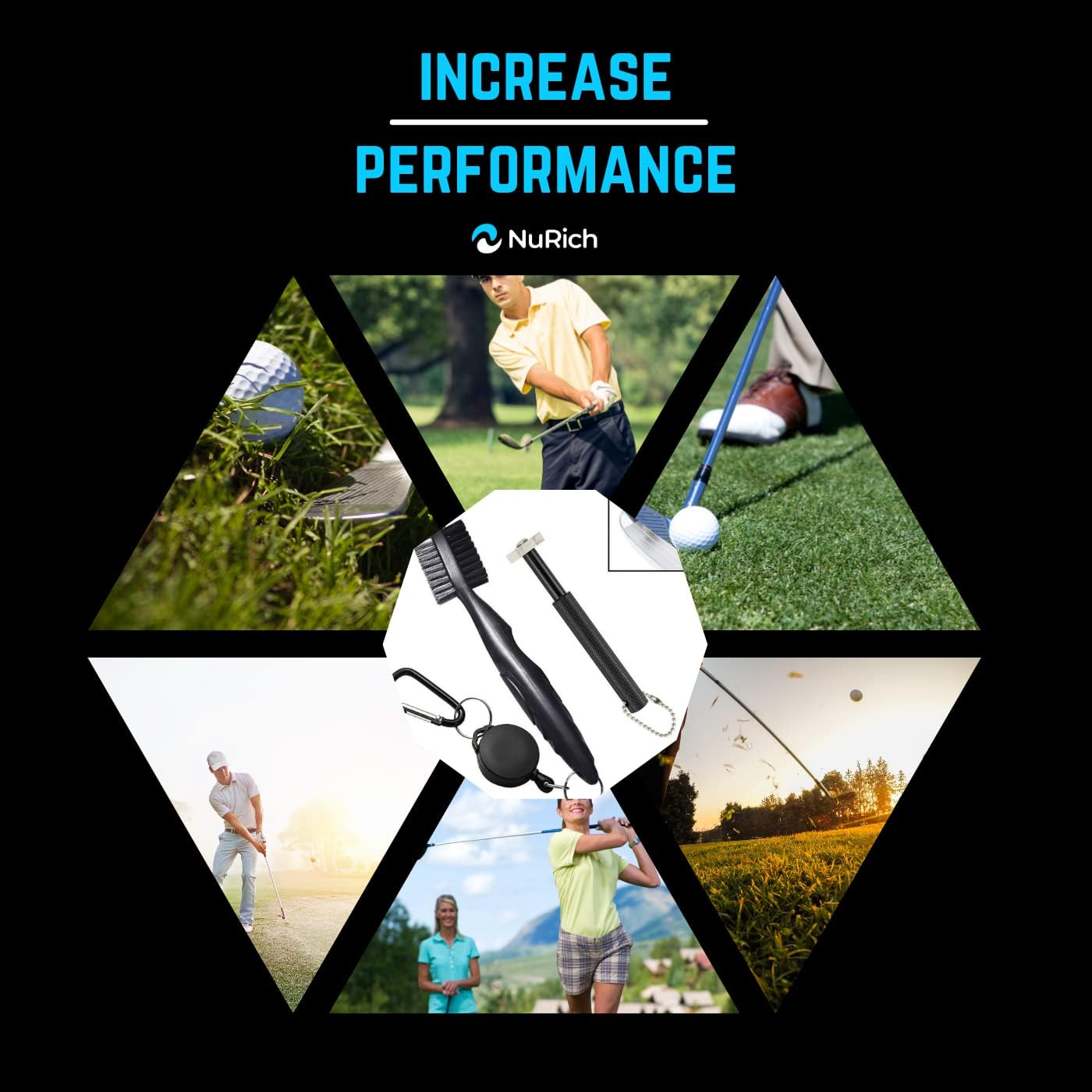 NuRich Golf Club Sharpener and Brush Cleaner Golfer Accessories Kit Comes with Wire/Nylon Brush, Iron Groove Sharpener, Retractable Zip-Line, and Golfing Carabiner for Golf Bag or Lanyard Attachment
