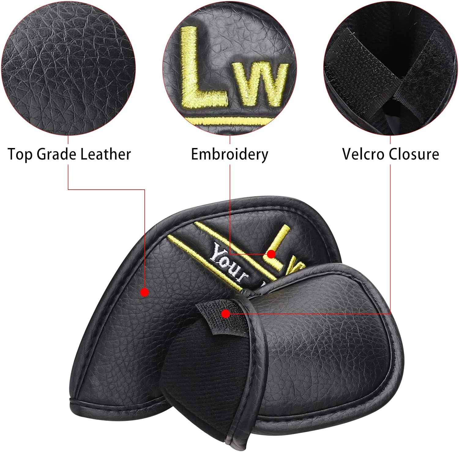 CRAFTSMAN GOLF 12pcs or 1pc Black Leather Golf Iron Head Covers Set Headcover Colorful Number Embroideried for Callaway Ping Taylormade Cobra Also Custom Version w/Your Name