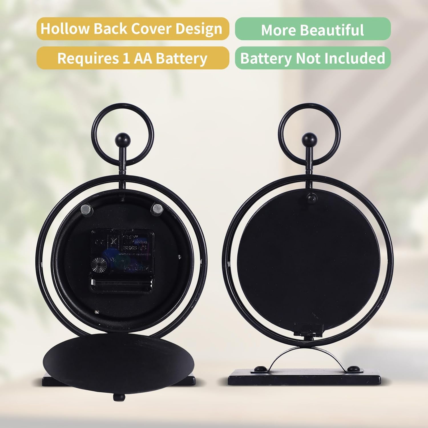 - Unique Design Desk Clock: The shelf clock crafted from metal with a retro black finish and a hollow-out back cover, this farmhouse table clock delivers authentic vintage charm. A timeless piece designed to add sophistication to any room's decor.