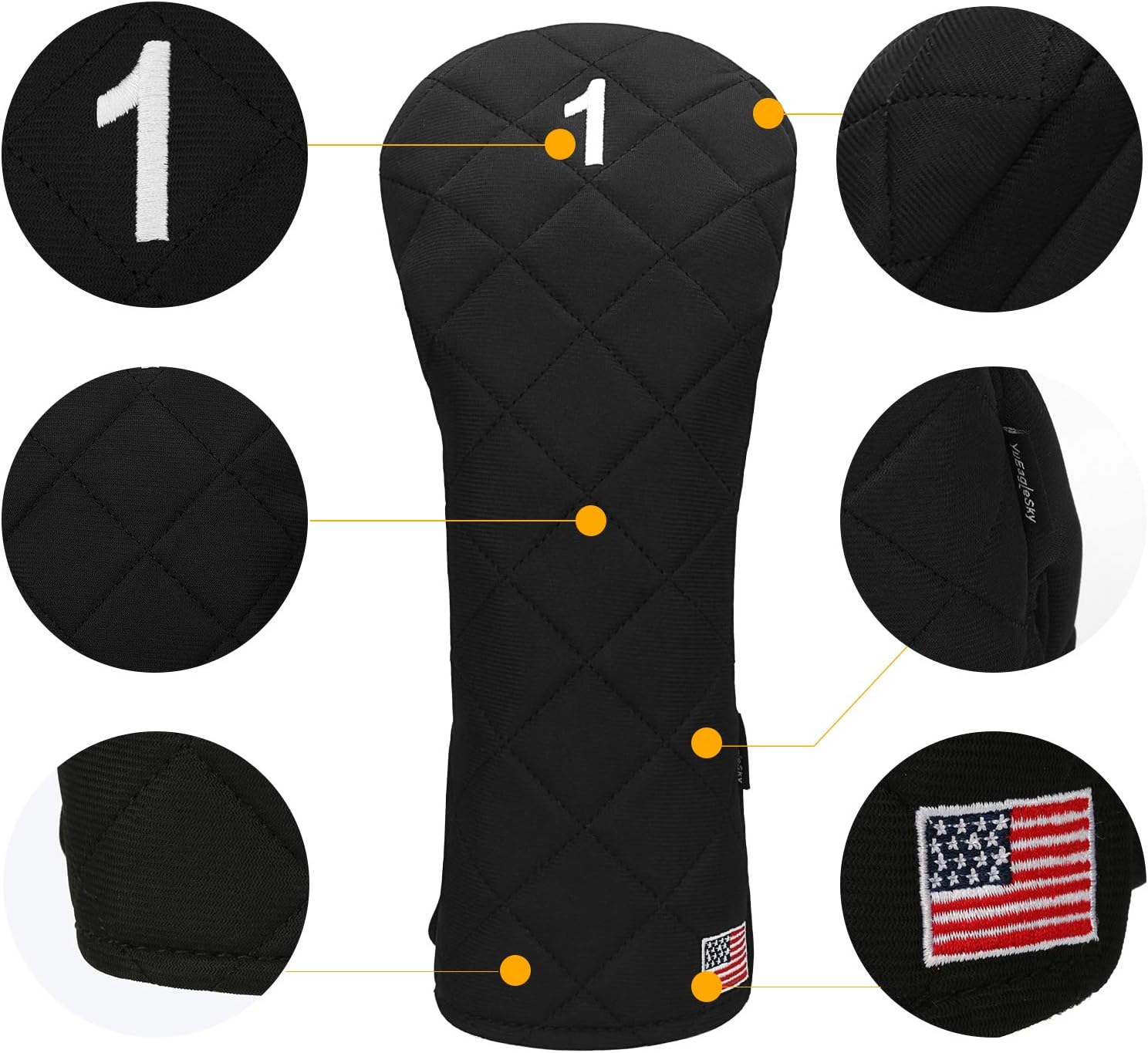Golf Head Covers Driver Fairway #3#5 Hybrid USA Flag for Club Men Women, (Black or White)