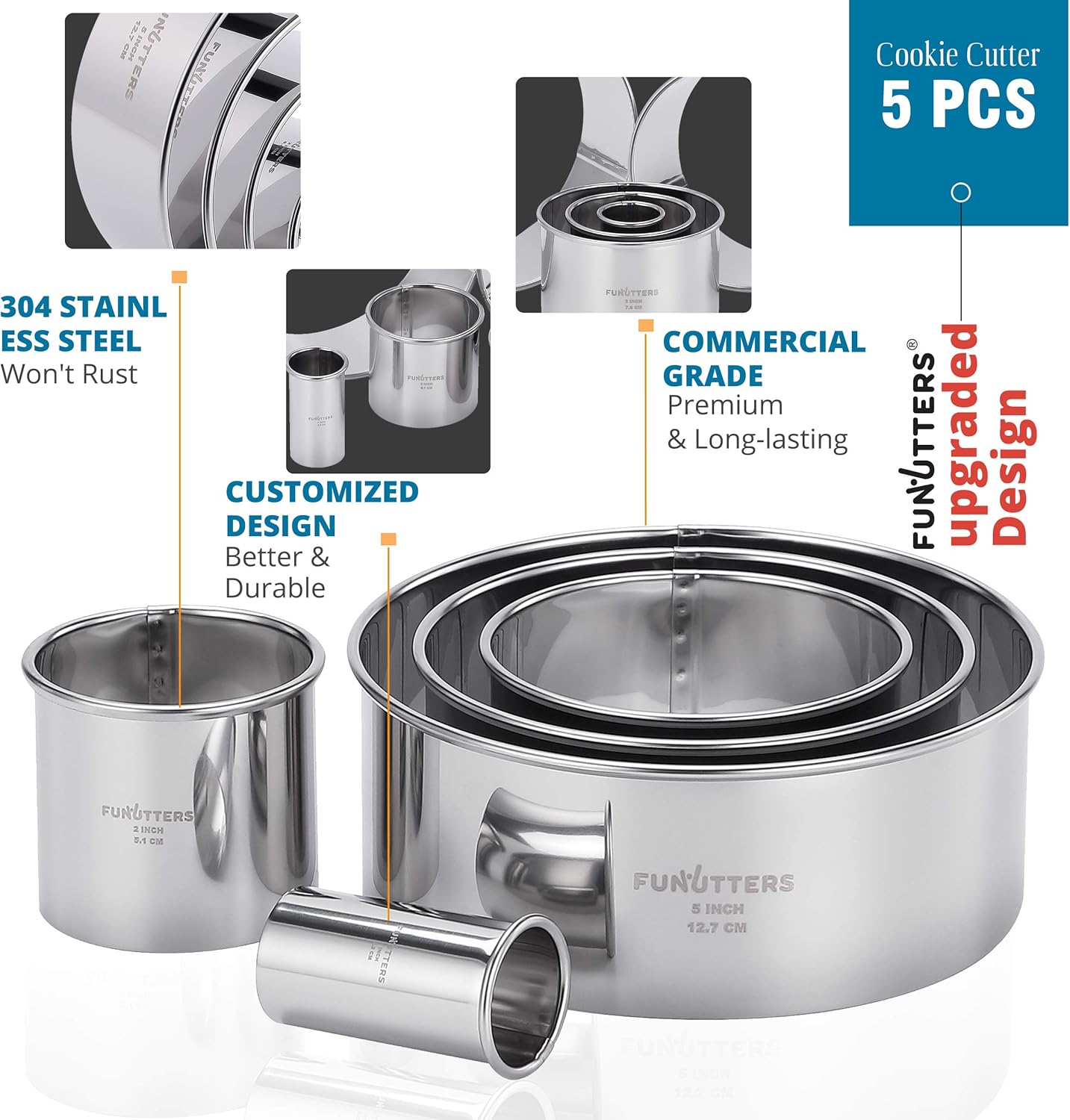 - Create a Fun At-Home Kitchen Bakery: Every cookie and biscuit cutter set comes with 1, 2, 3, 4, and 5 inches metal rings, each with a 2β depth, so you can expand those baking recipes and cookbook ideas to include cakes, pastries, scones, or even pizza.