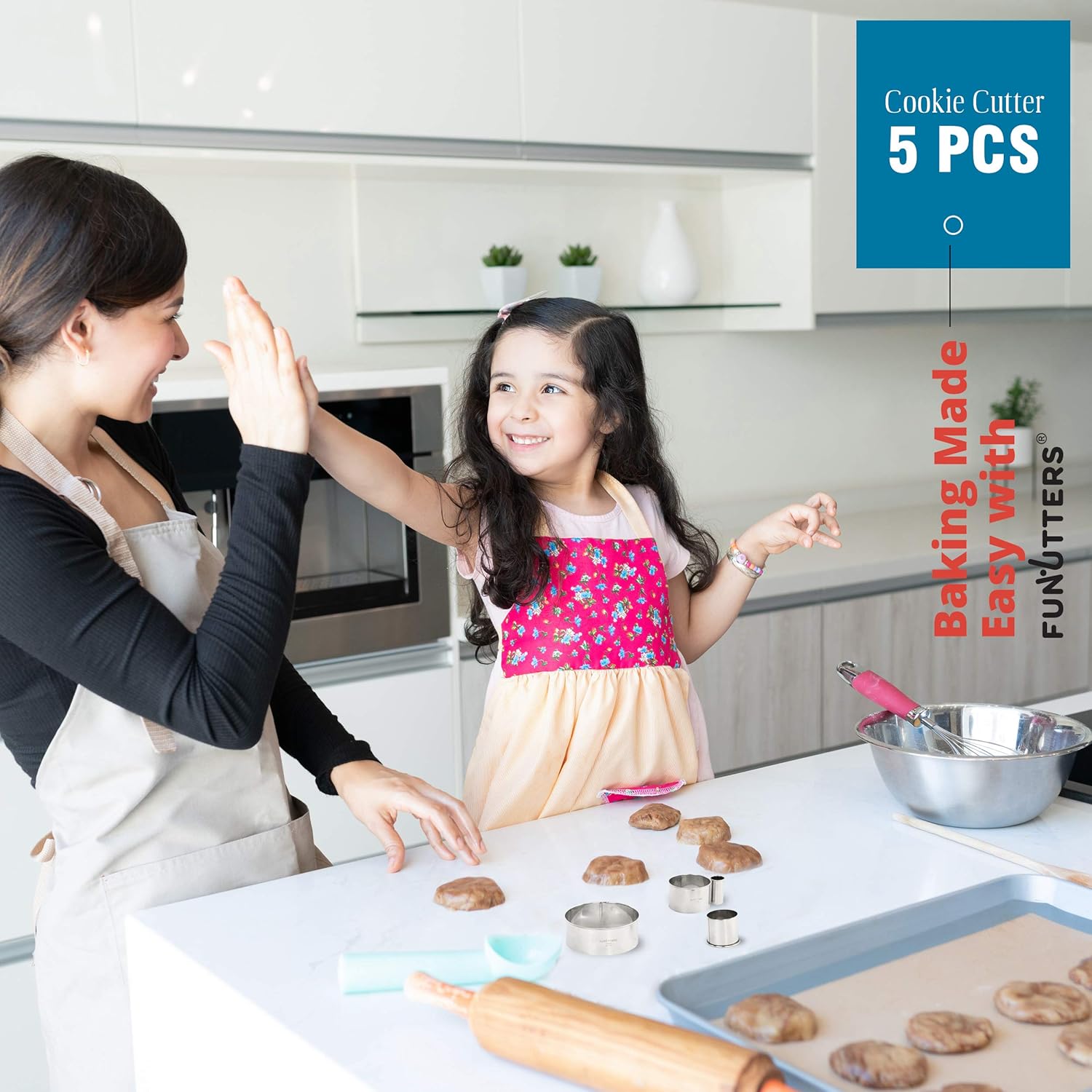Cookie Cutter Set, 5 Pc. Kit, Measuring 1'', 2'', 3'', 4'' and 5'', Round Metal Baking Rings for Pastry, Biscuits, and Dough Cutting, Heavy Duty and Reusable, Multiple Sizes