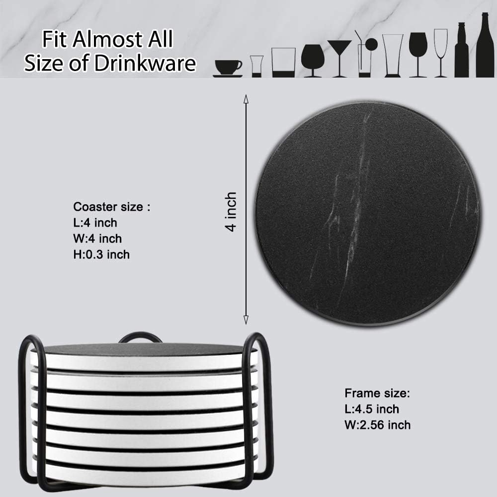 EAGMAK Set of 8 Coasters for Drinks, Marble Style Ceramic Drink Coaster with Holder for Coffee Wooden Table Home Decor(Black)