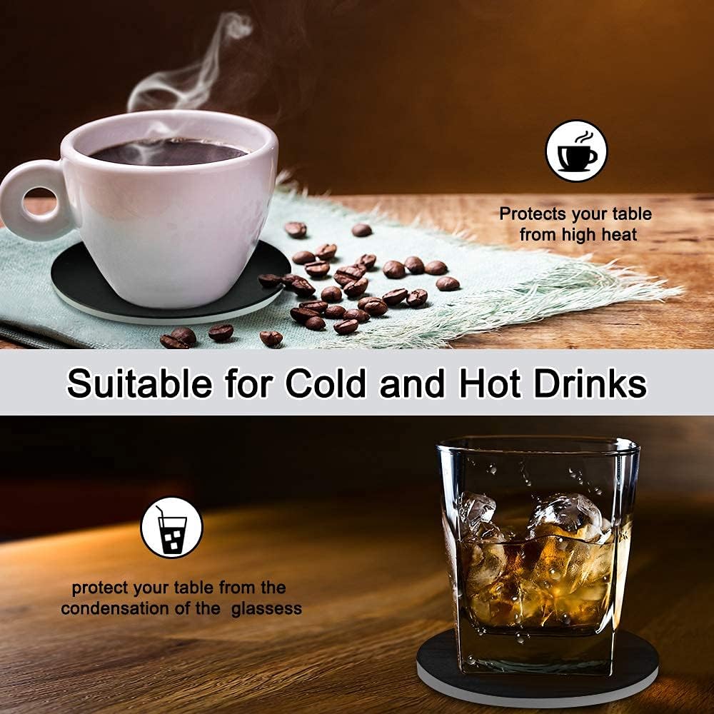 - More resistant to dirty: Black coasters are much more resistant to dirt than other colored coasters. Sprinkling colored drinks like coke, coffee, and orange juice on the black coaster won't make it look dirty. Just wipe them with paper and they will look as new.