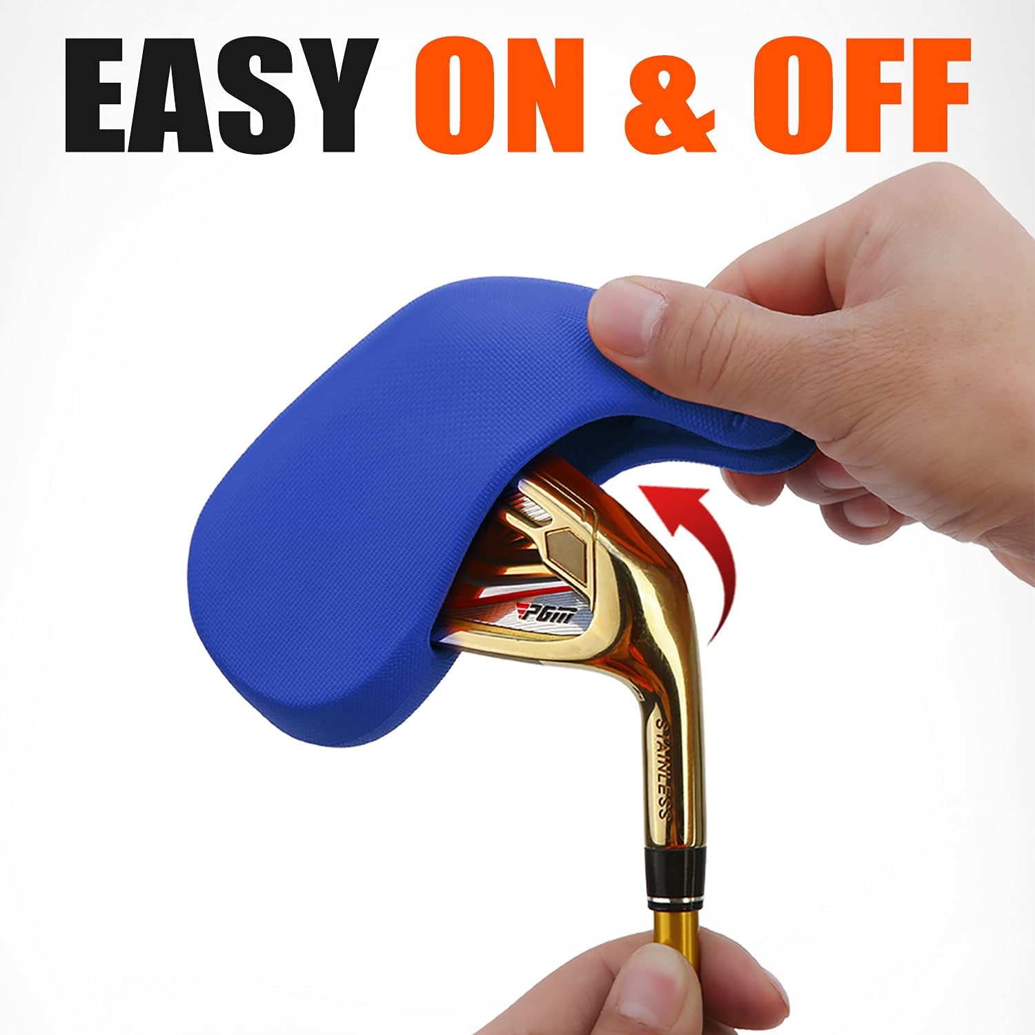 - [Easy to Spot] The top number opening makes it easier for you to quickly identify the correct iron clubs. It is designed to be put on and taken off quickly; it glides on and off without the need for magnets or Velcro.