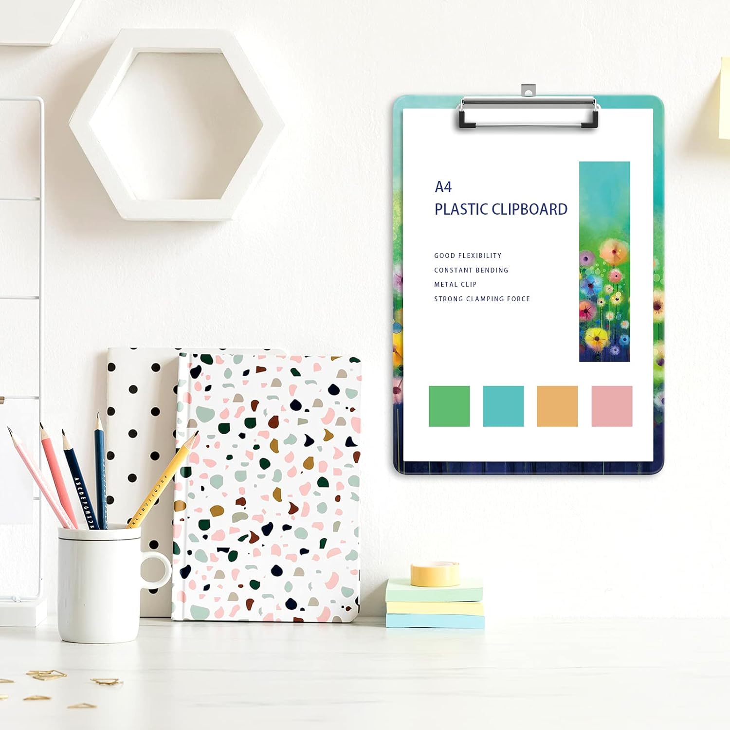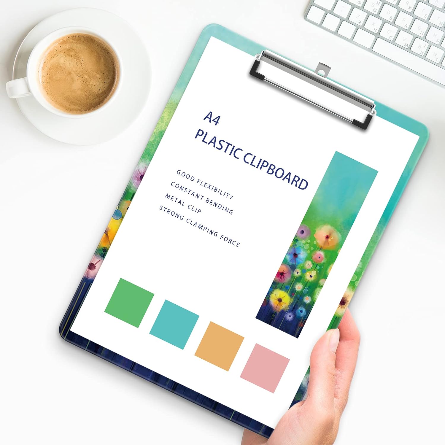Plastic A4 Clipboards, Cute Clip Board Stardard Letter Size 9 x 12.5 in, Office Decorative for Students Women Men and Kids, Daffodil