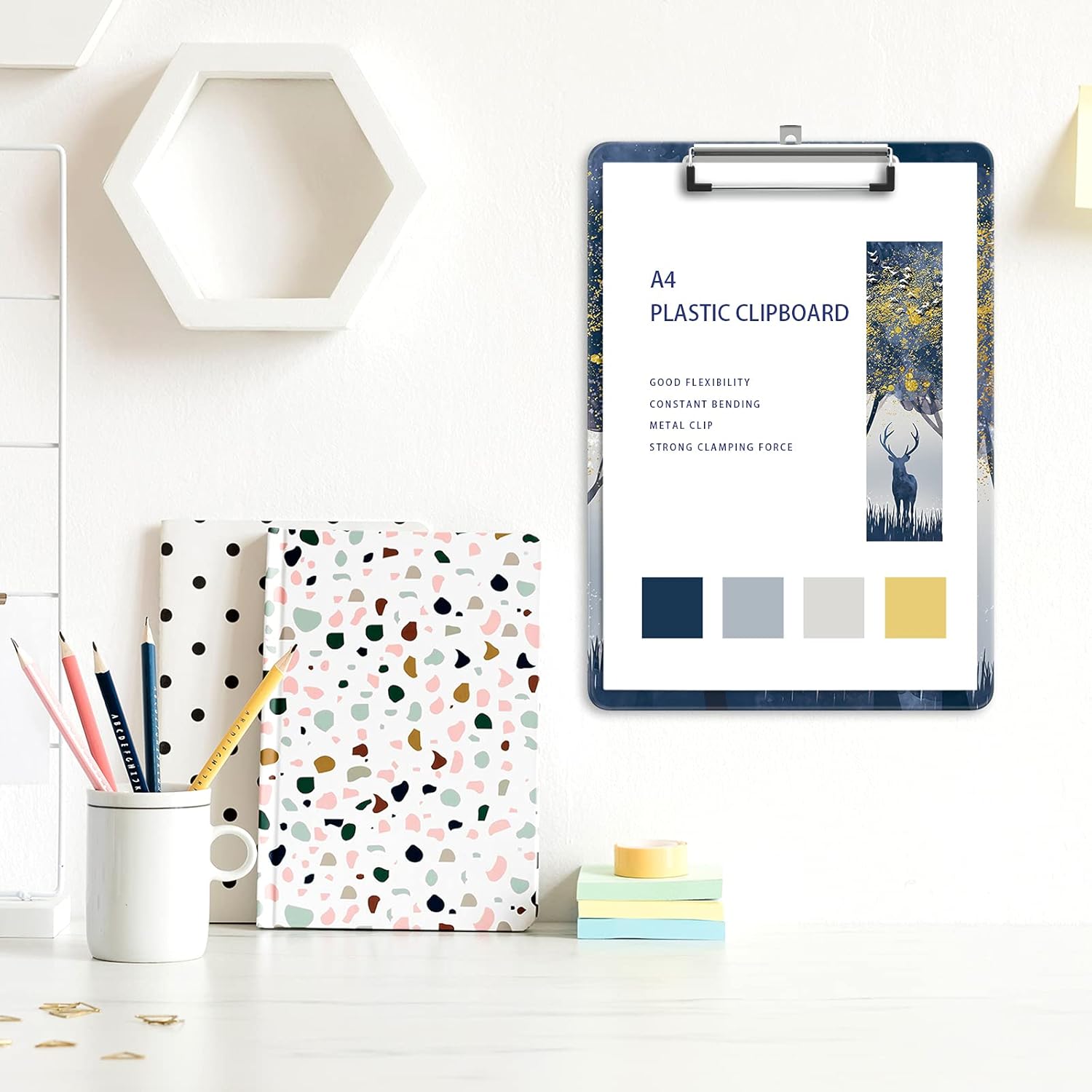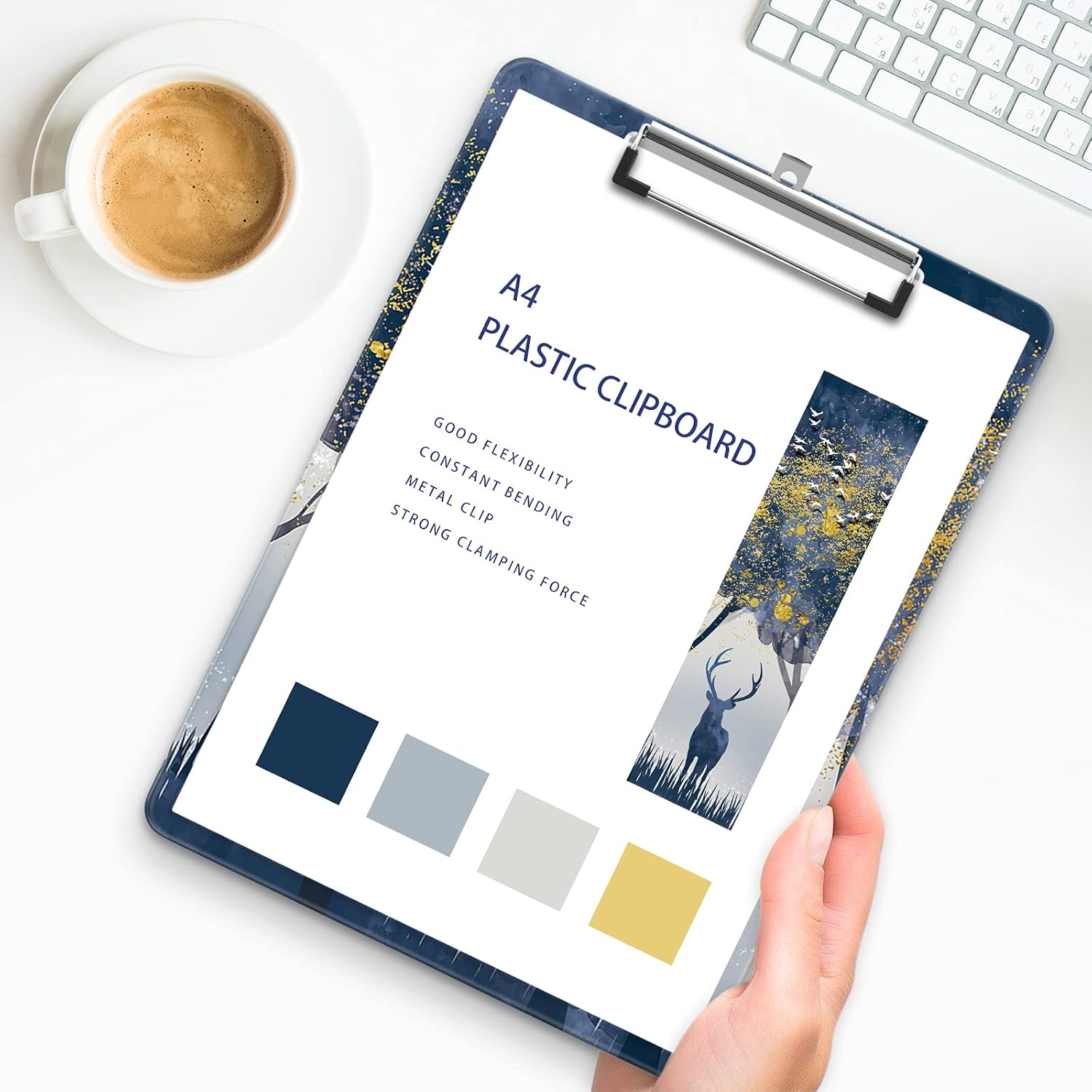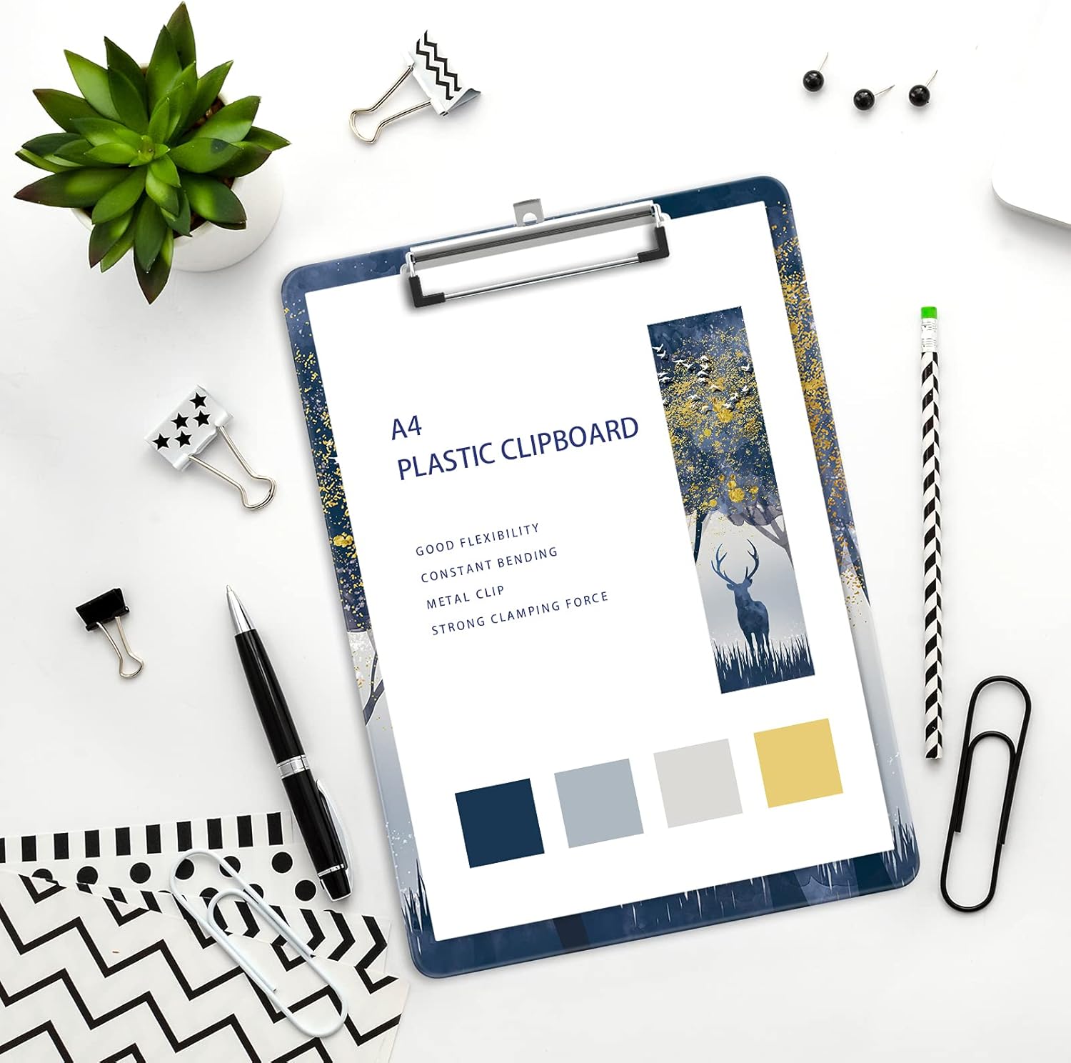 Plastic A4 Clipboards, Cute Clip Board Stardard Letter Size 9 x 12.5 in, Office Decorative for Students Women Men and Kids, Jungle Deer