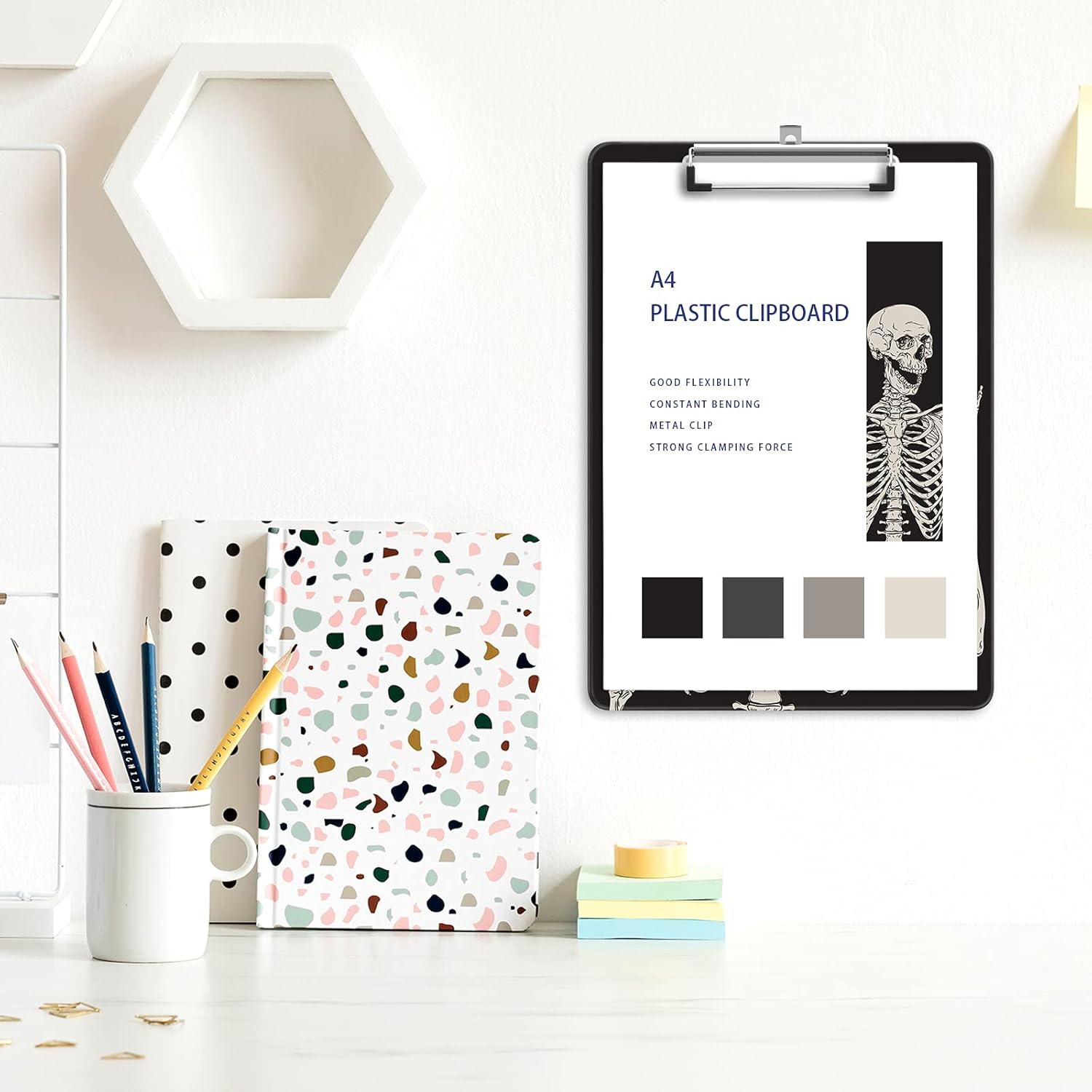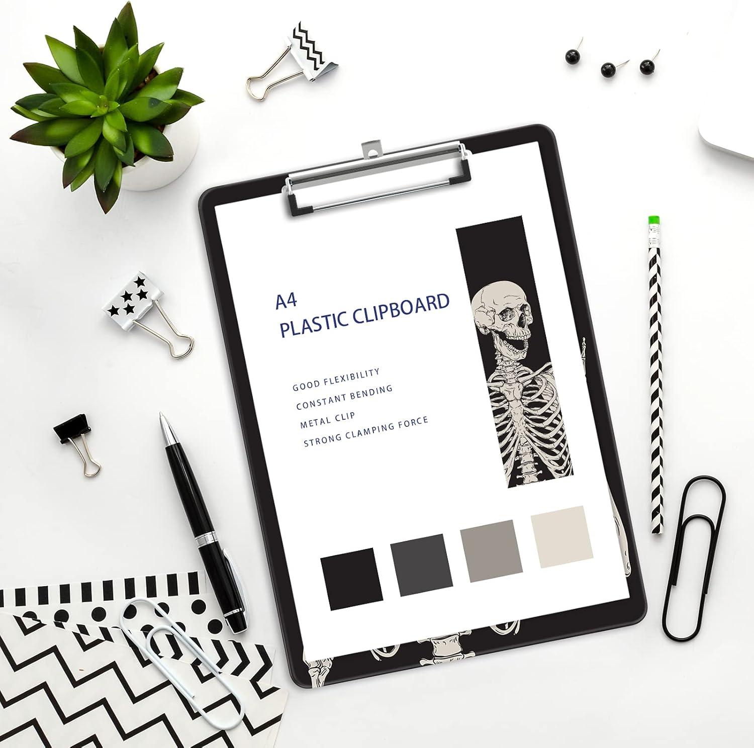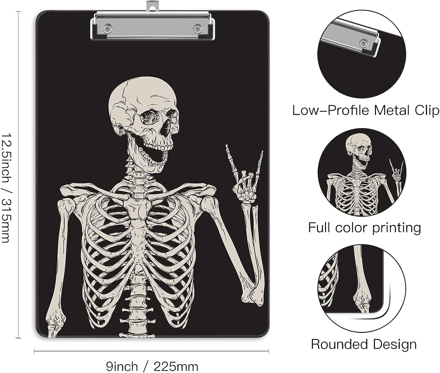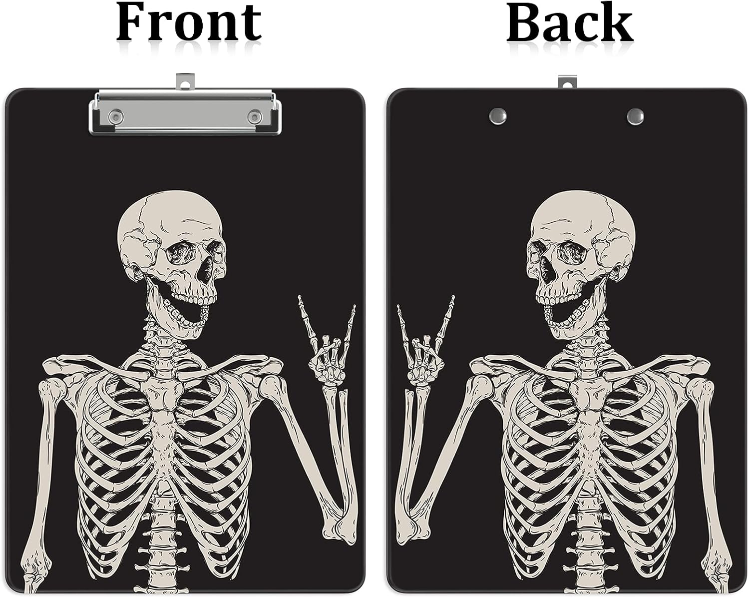 Plastic A4 Clipboards, Cute Clip Board Stardard Letter Size 9 x 12.5 in, Office Decorative for Students Women Men and Kids, Skeleton