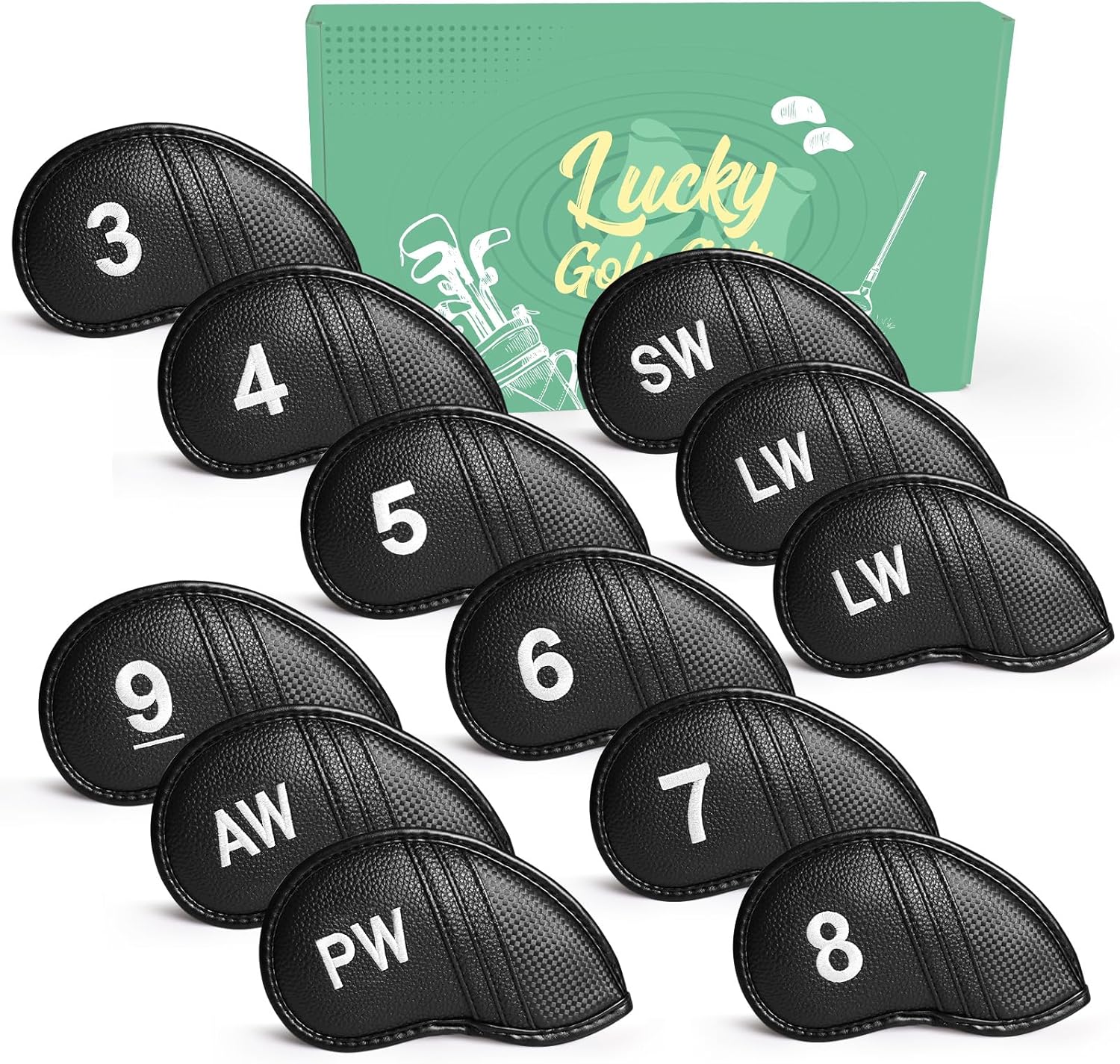 Amy Sport Golf Iron Head Covers Value 12 Pcs Set Thick Synthetic Leather, Protection Weatherproof Club Headcover Fit Universal Main Iron Wedge Golf Clubs for Men Women