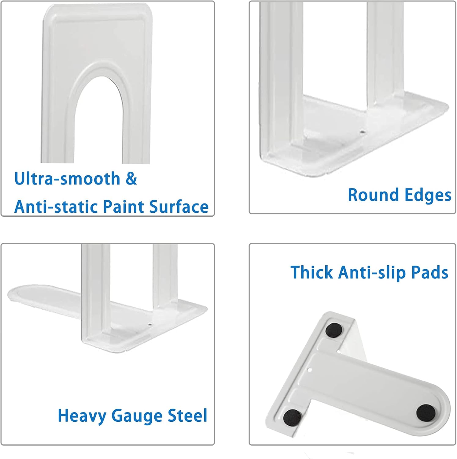 Metal Bookends for Home Office, Book Shelf Holder Home Decorative, Book Ends for Heavy Books/Movies/CDs, White 6.5 x 5 x 5.7 in, 4 Pair/ 8 Piece