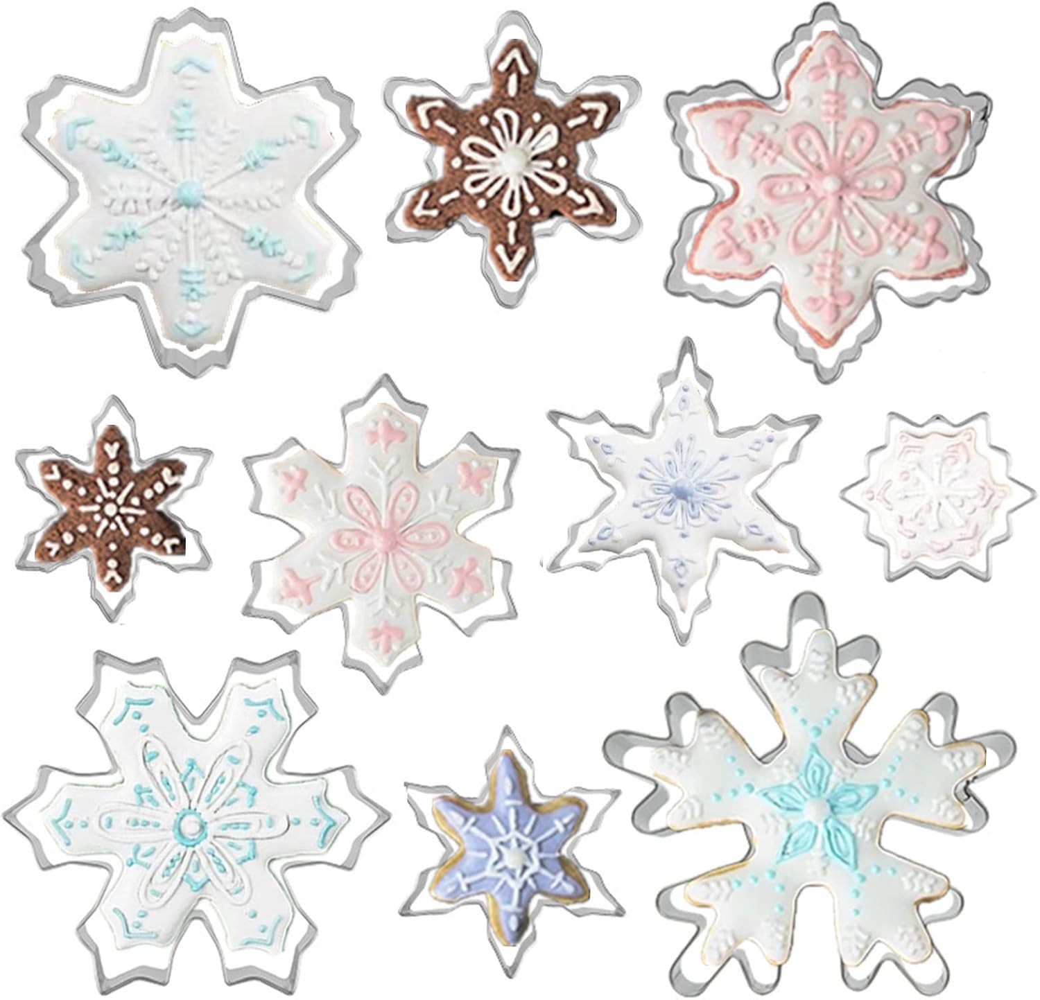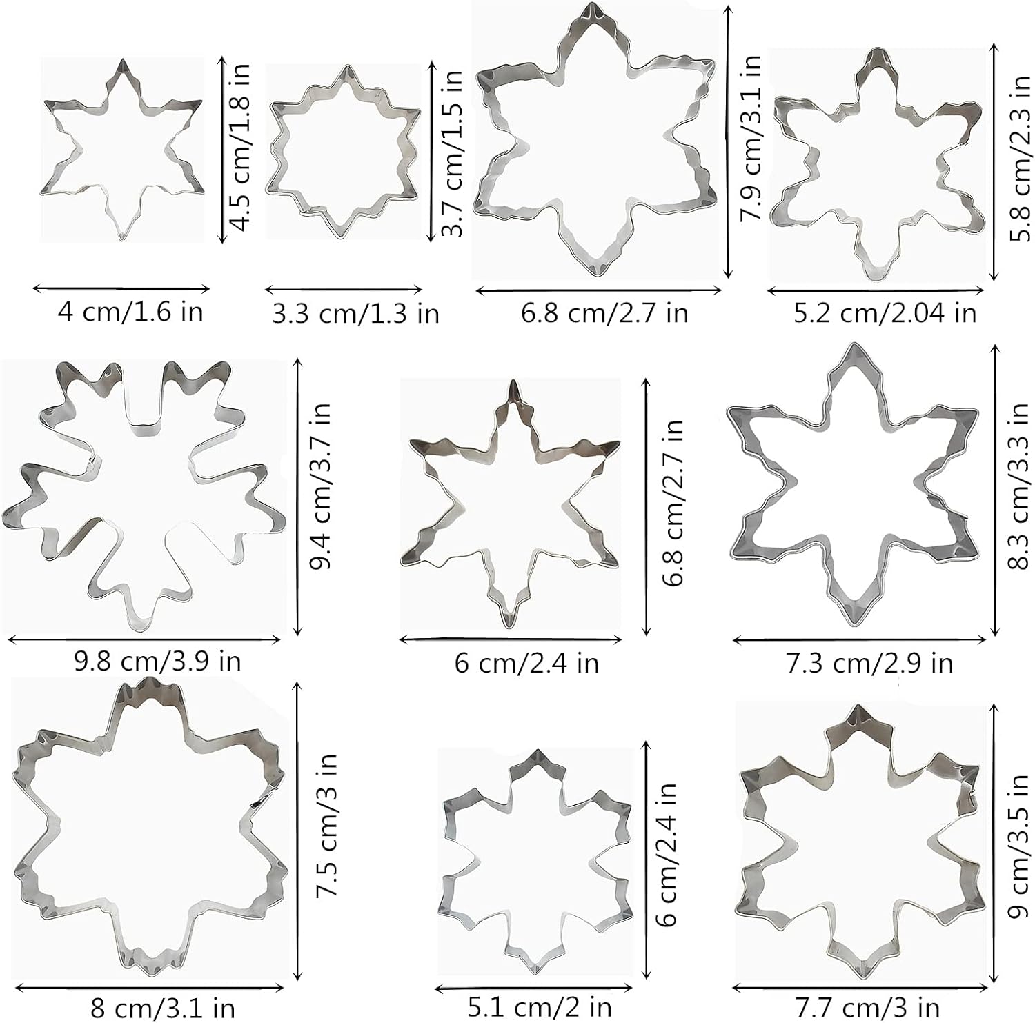 Snowflake Cookie Cutters Set of 10 pcs, Stainless Steel Snowflake Shaped Christmas Holiday Baking Molds for Fondant & DIY Crafts