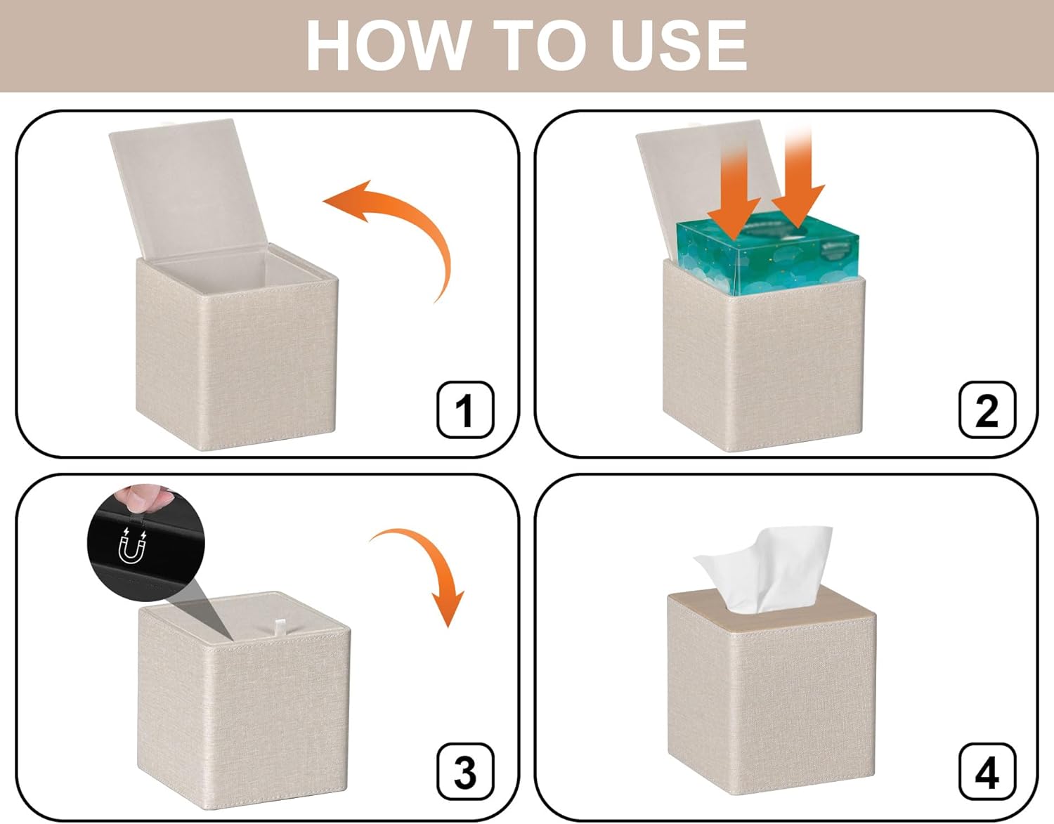 - Standard Size: Measures 5.5" (L) x 5.5" (W) x 5.7" (H), fits all standard cubic tissue boxes.