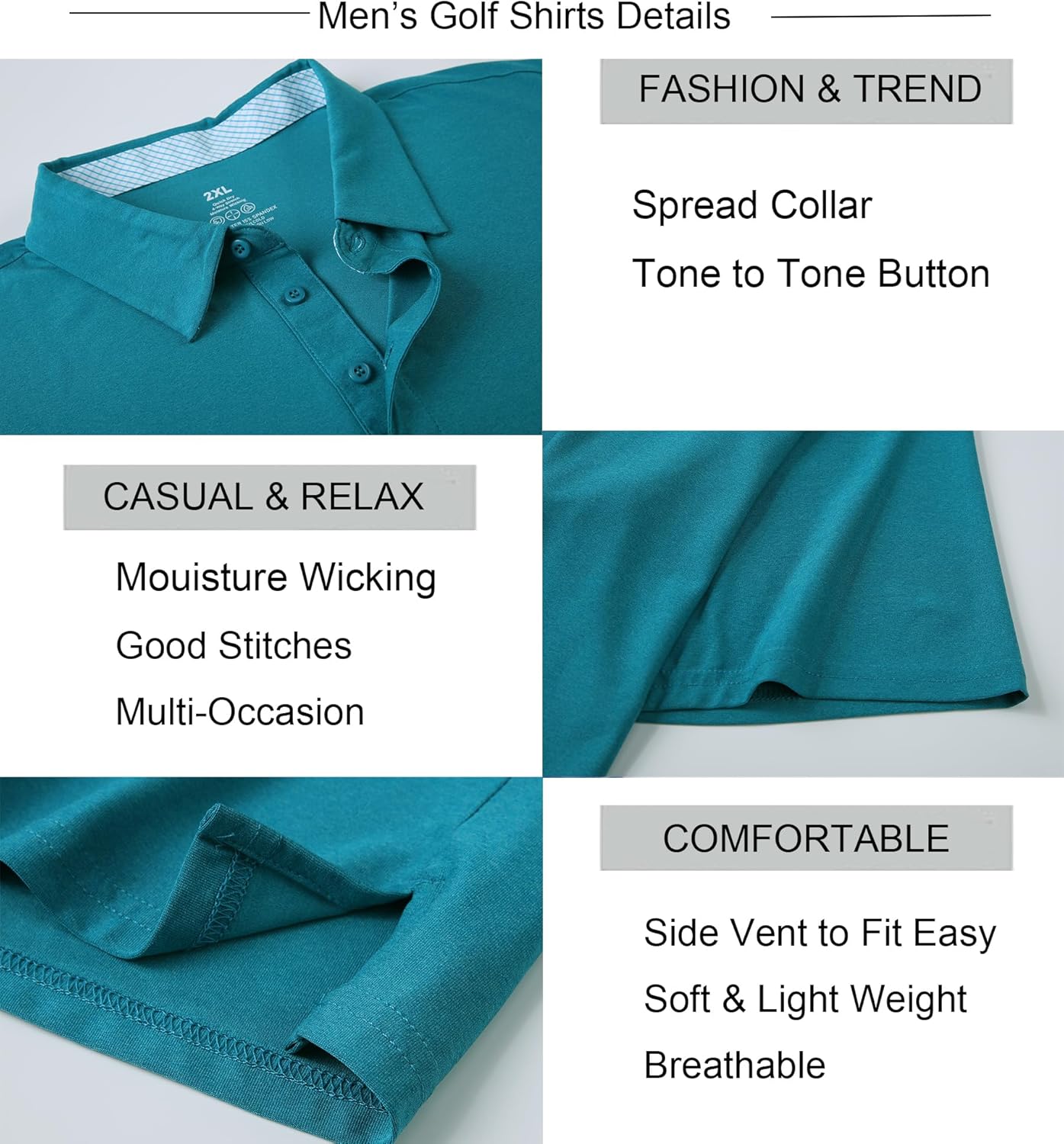 - Material: Our Mens Golf Shirts are made from 85%Polyester 15%Spandex, Light Weight, UPF40+, Quick Dry, Moisture Wicking, Soft, Breathable, Extremely comfy to wear the whole day. Can't beat the quality of this shirt