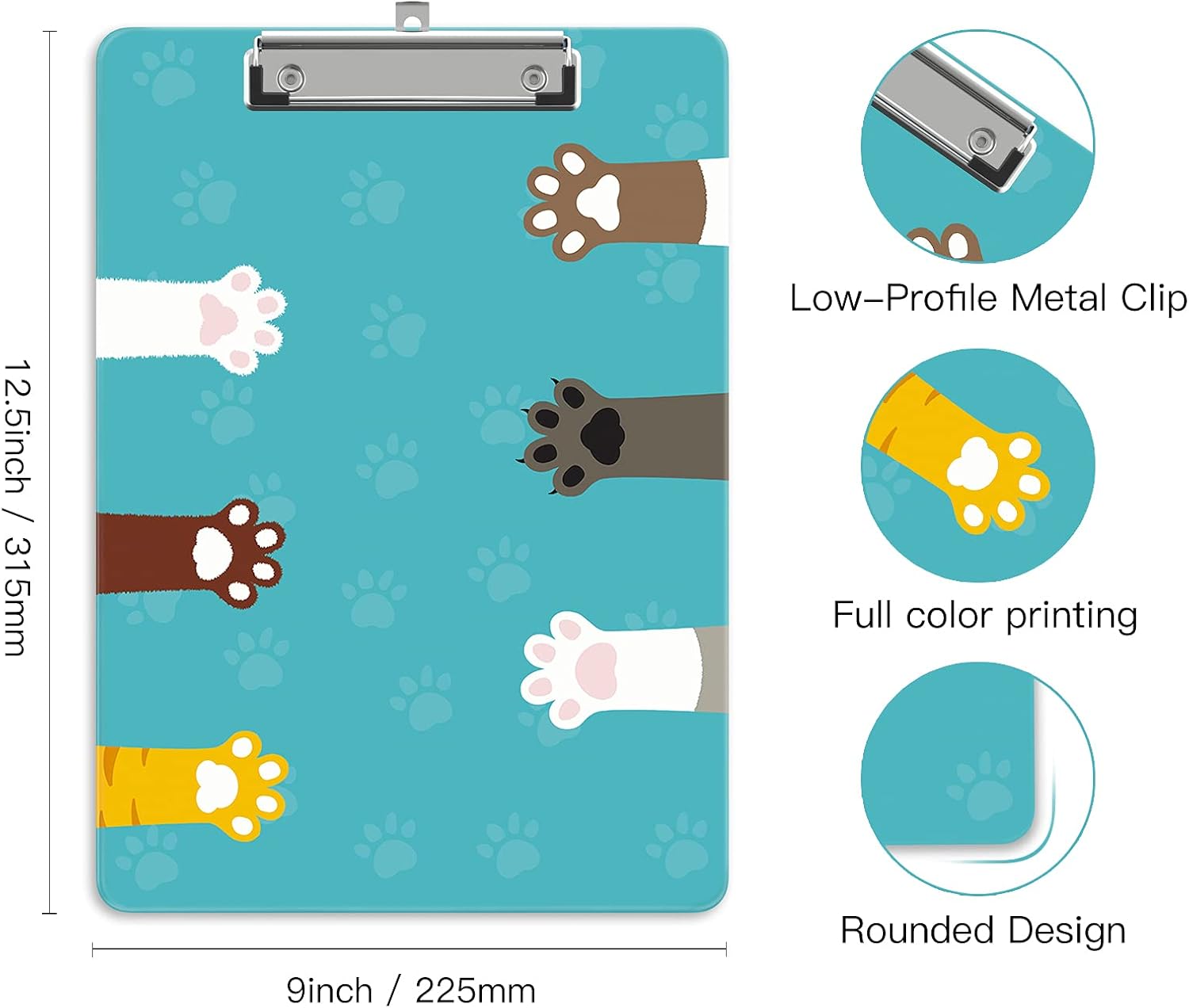 Plastic A4 Clipboards, Cute Clip Board Stardard Letter Size 9 x 12.5 in, Office Decorative for Students Women Men and Kids, Cat Claw