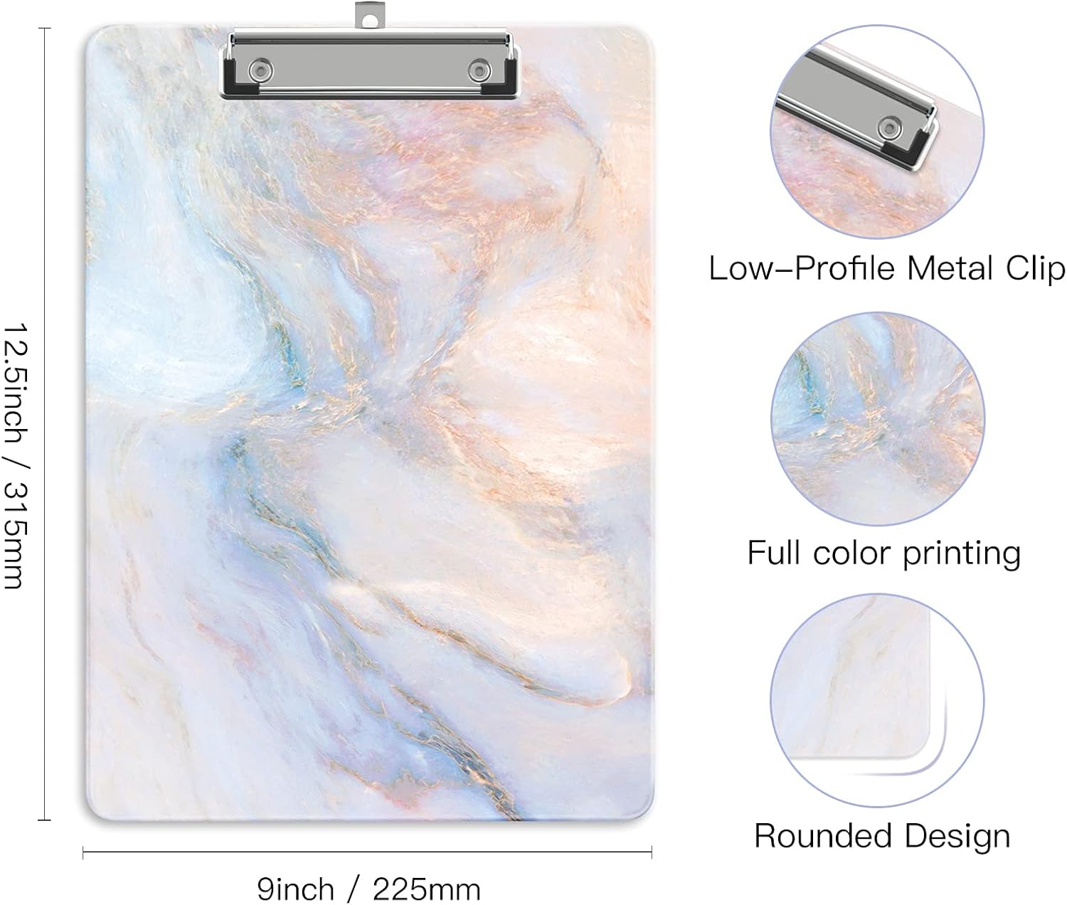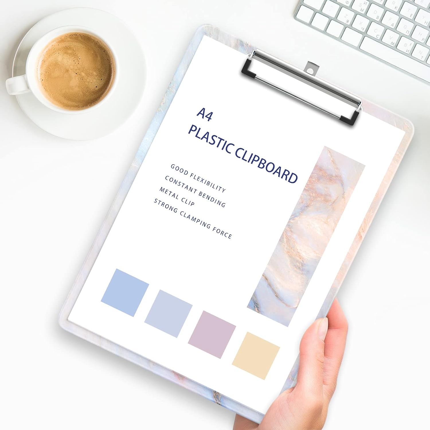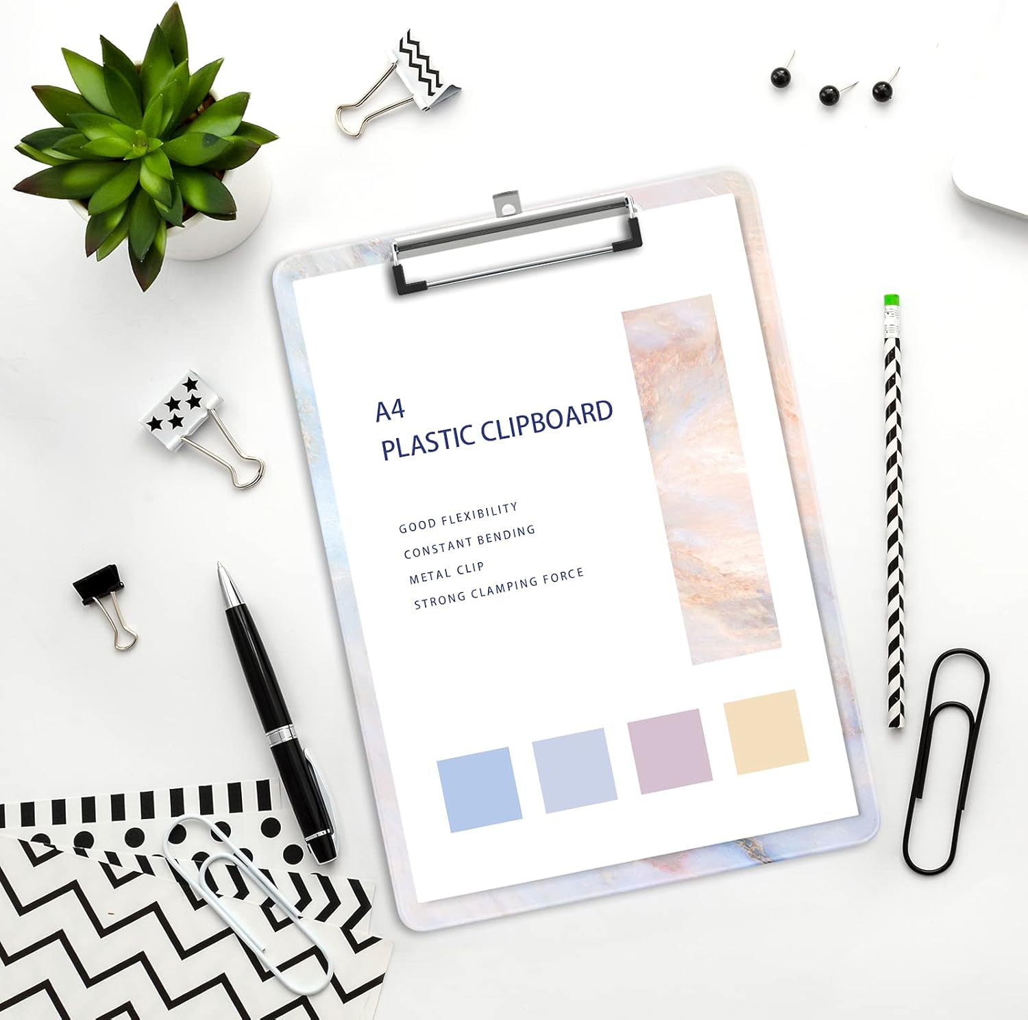 Plastic A4 Clipboards, Cute Clip Board Stardard Letter Size 9 x 12.5 in, Office Decorative for Students Women Men and Kids, Cute Marble