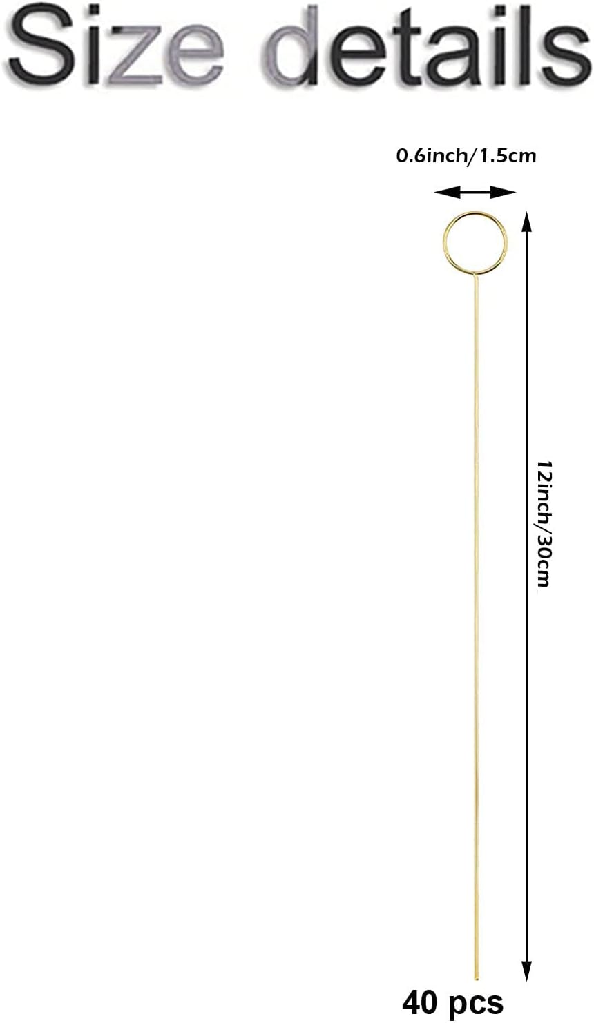 H&W 12''L Golden Ring Loop Round Shape Card Holders 40PCS Floral Picks Clips for Wedding & Flower Arrangements, DIY Craft Wire Clip Table Card Holders Note Photo Picture Memo Holder Cake Topper (Ring)