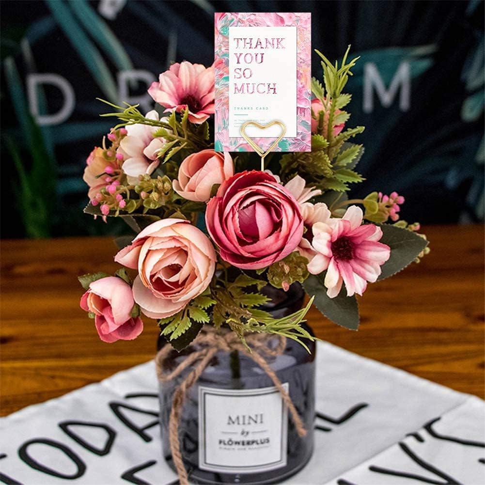 H&W 12''L Golden Heart Loop Round Shape Card Holders 40PCS Floral Picks Clips for Wedding & Flower Arrangements, DIY Craft Wire Clip Table Card Holders Note Photo Picture Memo Holder Cake Topper